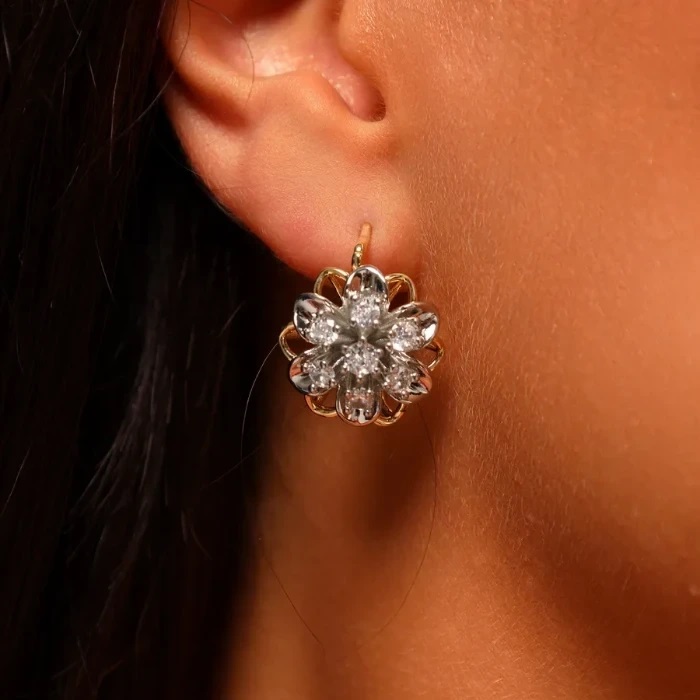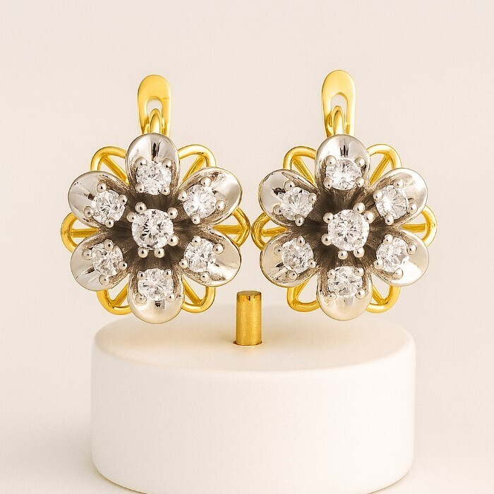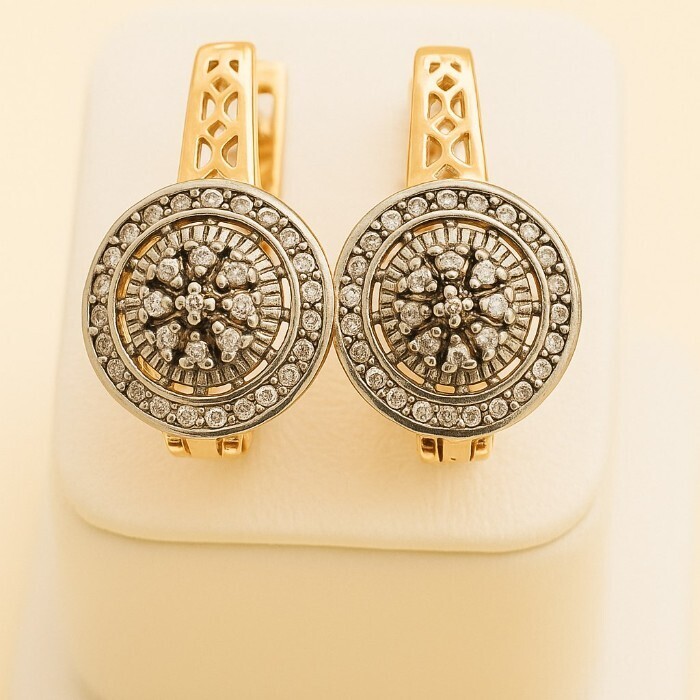 Серьги ювелирная бижутерия Итальянское золото (покрытие желтое 14к), вставка: фианиты, цвет: прозрачный, арт.313.373 2 фото