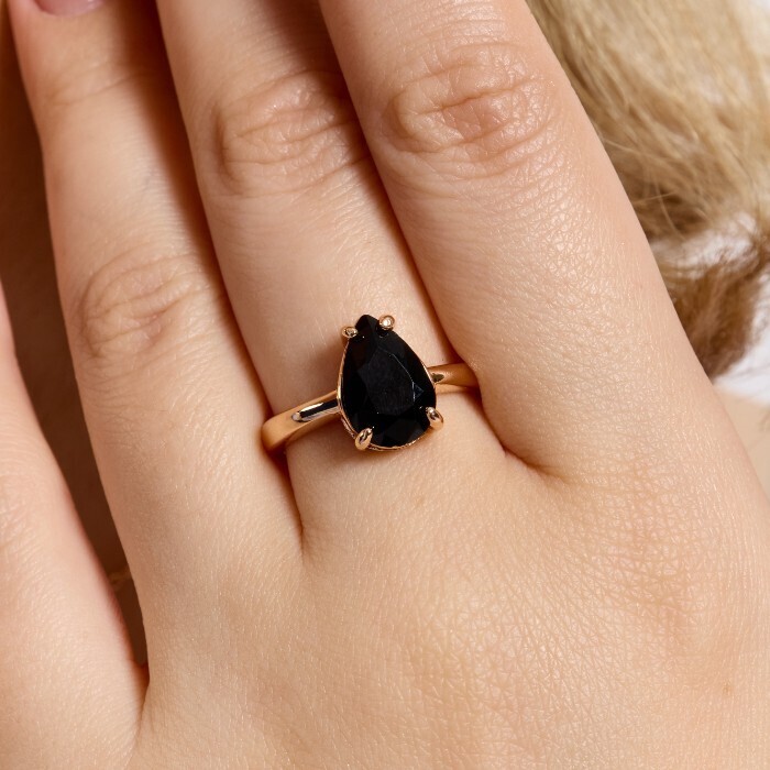 Кольцо 17 р ювелирная бижутерия коллекция "Дубай", покрытие позолота, вставка: фианиты, цвет: черный, арт.414.102-17 2 фото