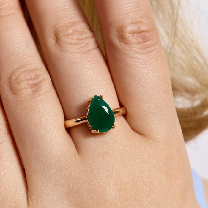 Кольцо 20 р ювелирная бижутерия коллекция "Дубай", покрытие позолота, вставка: фианиты, цвет: зеленый матовый, арт.414.106-20 2 фото
