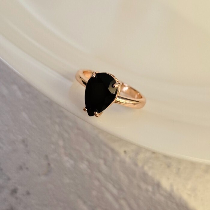 Кольцо 20 р ювелирная бижутерия коллекция "Дубай", покрытие позолота, вставка: фианиты, цвет: черный, арт.414.102-20 2 фото