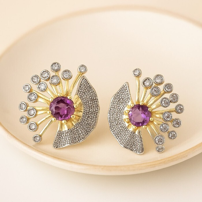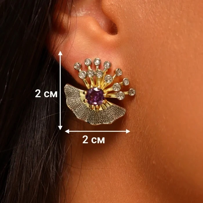Серьги ювелирная бижутерия Итальянское золото (покрытие желтое 14к), вставка: фианиты, цвет: фиолетовый и прозрачный, арт.313.370 2 фото
