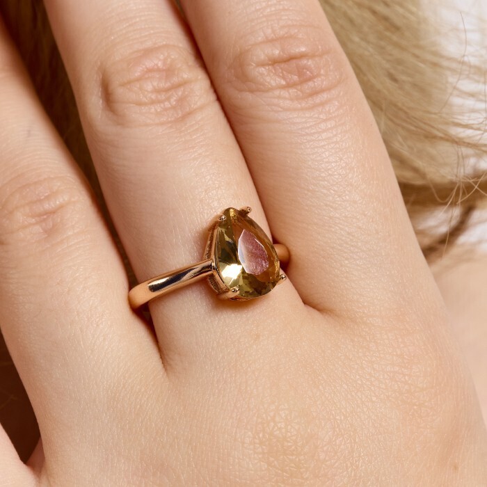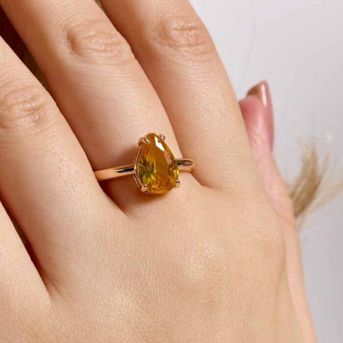 Кольцо 20 р ювелирная бижутерия коллекция "Дубай", покрытие позолота, вставка: фианиты, цвет: желтый, арт.414.098-20 2 фото