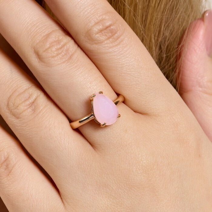 Кольцо 17 р ювелирная бижутерия коллекция "Дубай", покрытие позолота, вставка: фианиты, цвет: нежный розовый матовый, арт.414.104-17 2 фото