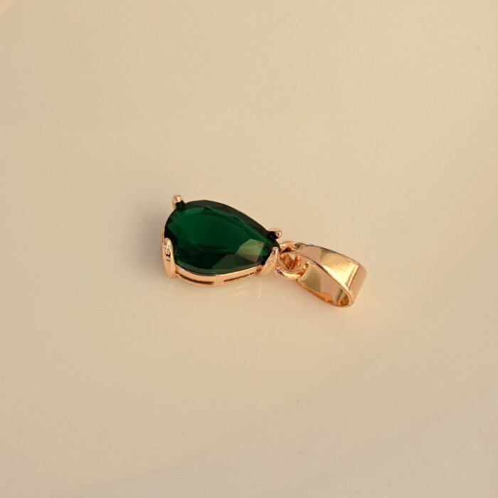 Комплект ювелирной бижутерии коллекция "Дубай" серьги и кулон, покрытие позолота, вставка: фианиты, цвет: зеленый, арт.314.974 3 фото