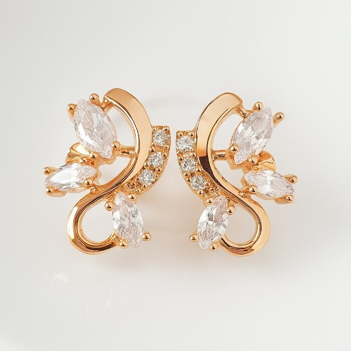 Серьги ювелирная бижутерия коллекция "Дубай" покрытие позолота, вставка: фианиты, цвет: прозрачный, арт.313.376