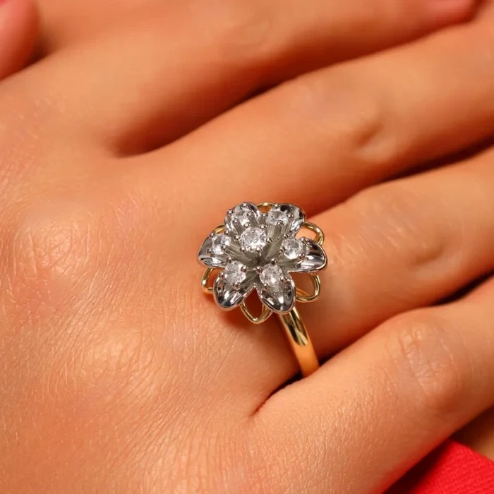 Кольцо 17 р ювелирная бижутерия коллекция "Дубай", покрытие позолота, вставка: фианиты, цвет: желтый, арт.414.098-17 2 фото