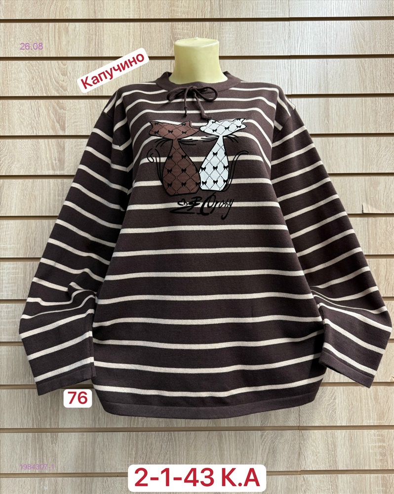 Кофта классная, очень приятная к телу, мягкая. На размер маломерит, ношу 48р, заказала 50, нисколько не пожалела, села хорошо.