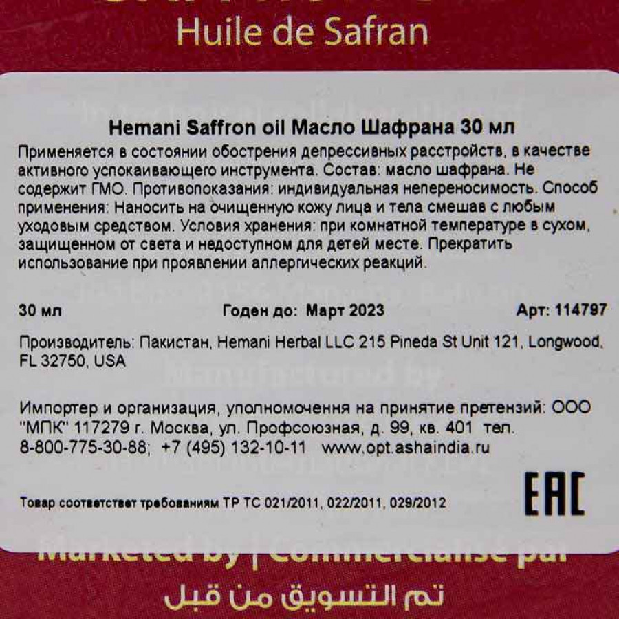 Hemani Saffron Oil / Масло Шафрана 30 мл
