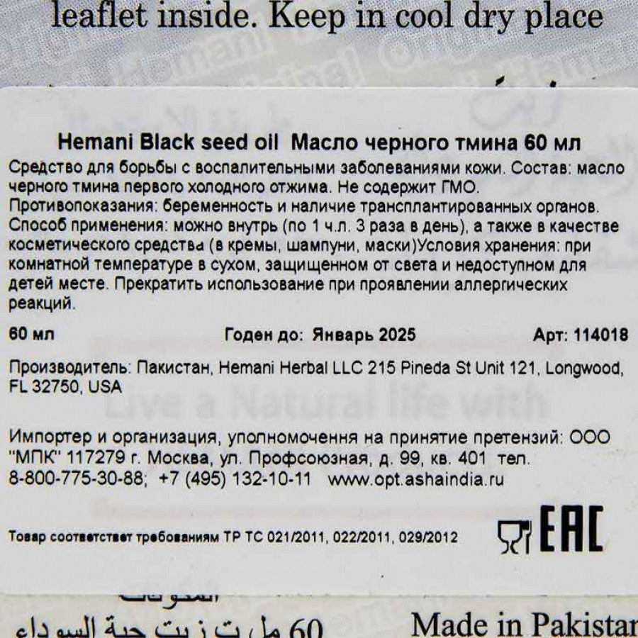 Hemani Black Seed Oil / Масло Черного Тмина 60 мл