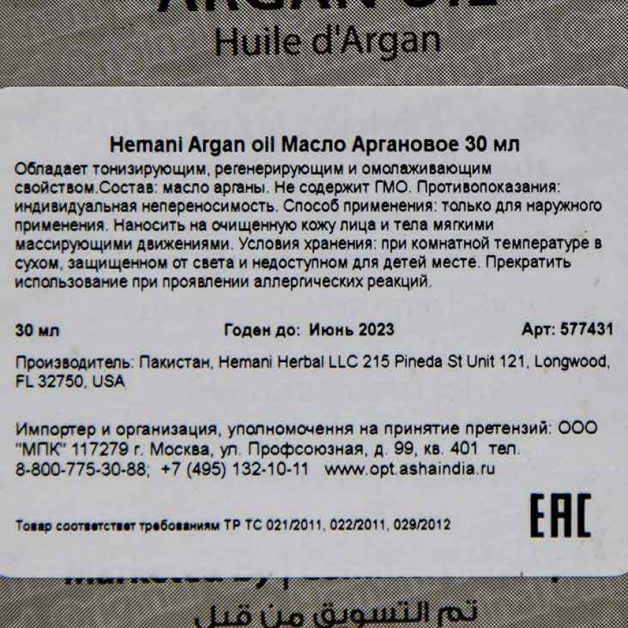 Hemani Argan Oil / Аргановое Масло 30 мл