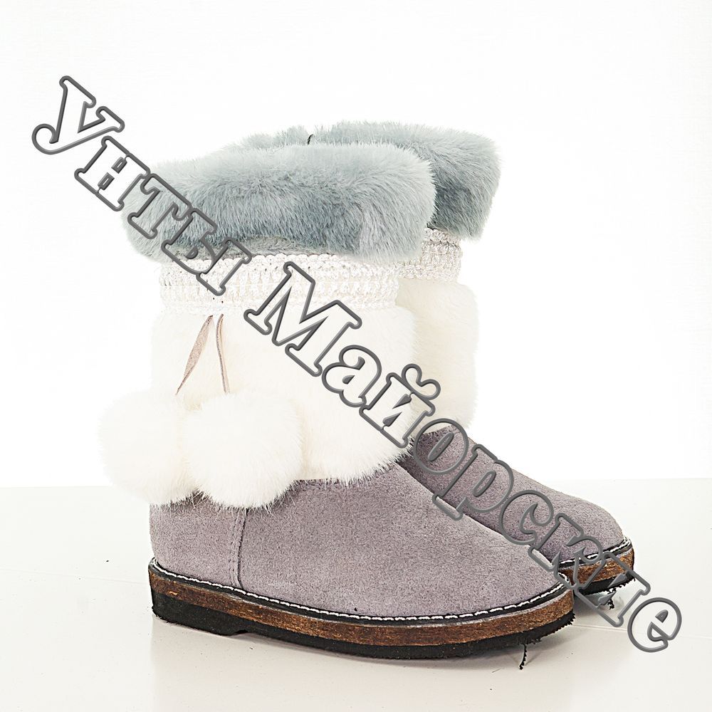 Унты детские бежевые “Страус” кожаные на войлочной подошве