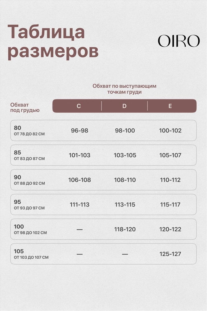 Размеры : 80C, 85C, 85D, 90C, 90D, 95C, 95D, 100E, 100С, 100D, 105E, 80D, 85E, 90E