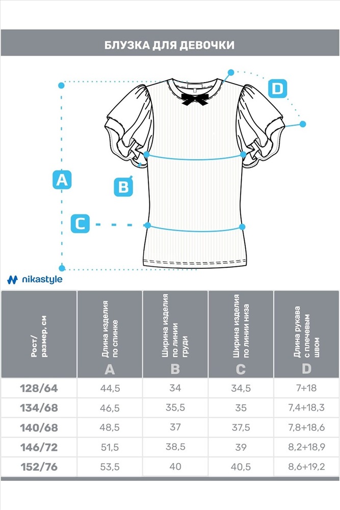 Размеры : 116/56, 122/60, 134/64, 140/68, 146/72, 152/76, 158/76, 128/64