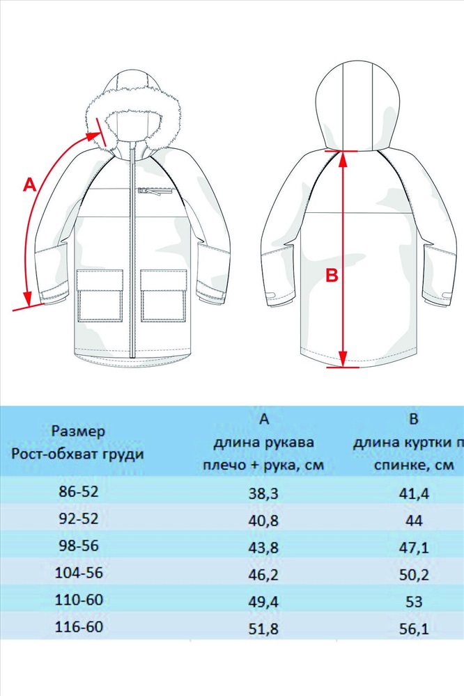 Размеры: 116/56, 122/60, 128/64, 134/64, 140/68, 146/72, 152/76