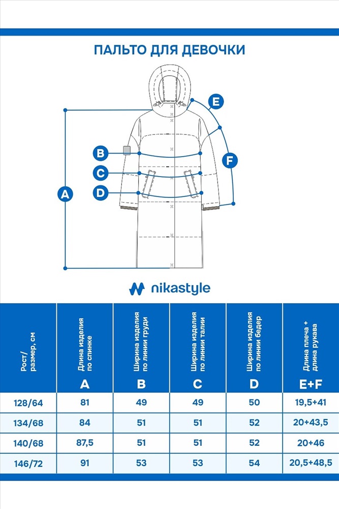 Размеры : 122/60, 128/64, 134/64, 140/68, 146/72, 152/76