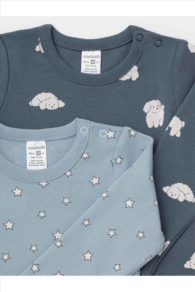 Артикул: К 6073-2уп/голубой Н102,синий Н052.3 набор полукомбинезон (боди) (1238325)