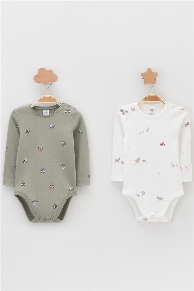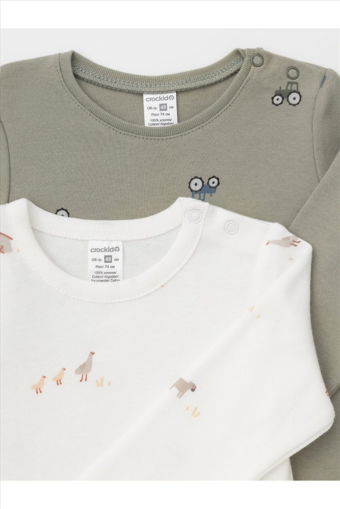 Артикул: К 6087-2уп/хаки Н031.1,молочный Н103 набор полукомбинезон (боди) (1238333)