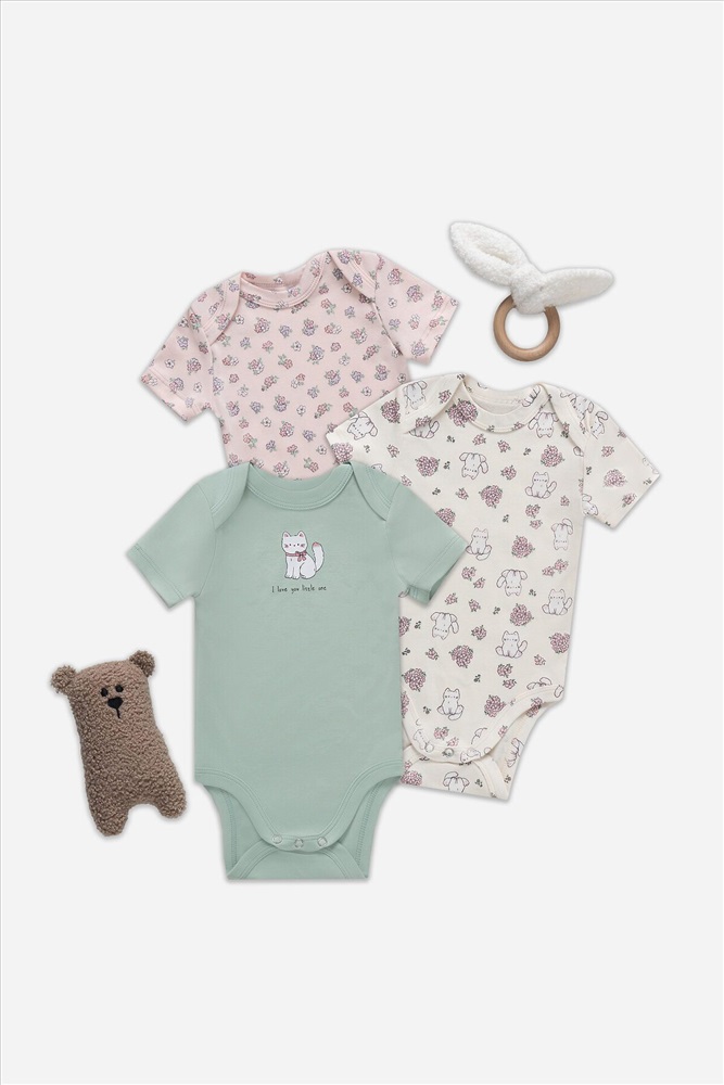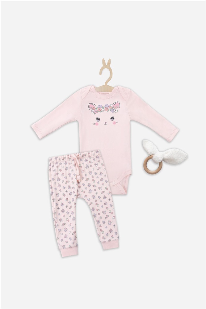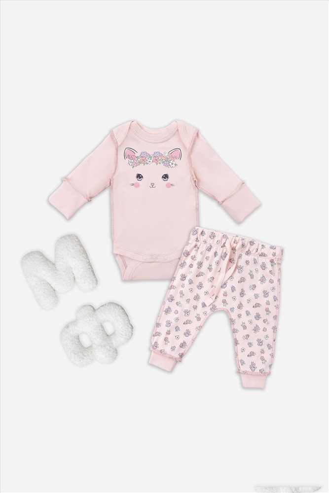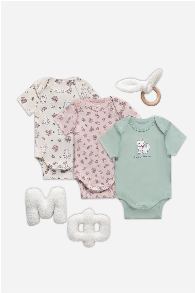 Цвет : Котики с цветами на молочном +розовый
