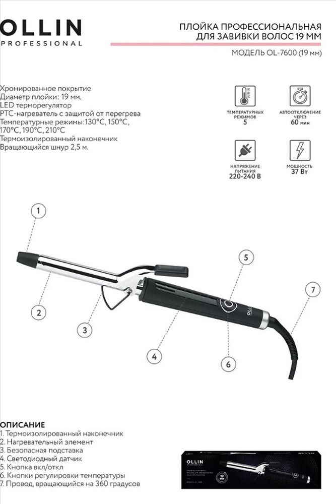 Ollin Плойка профессиональная для завивки волос OL-7600, 25 мм KRISTALLER, 1110348 5 фото