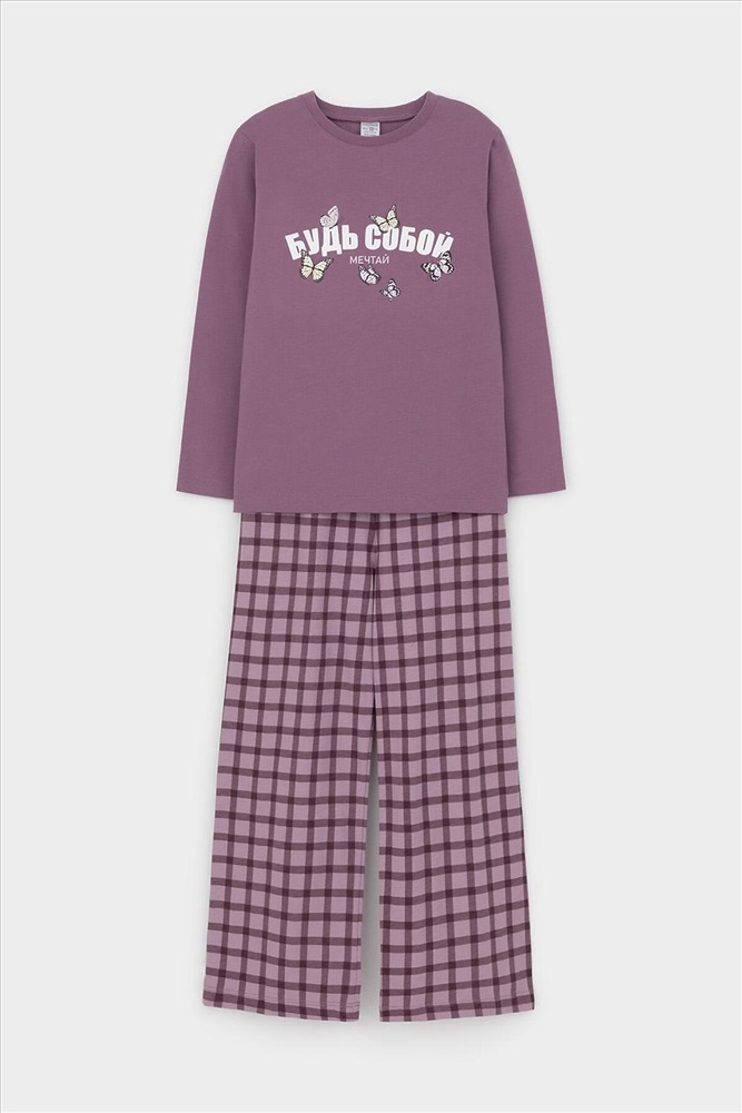 Артикул: К 1643/дымчатая роза,шотландская клетка пижама (1128251)