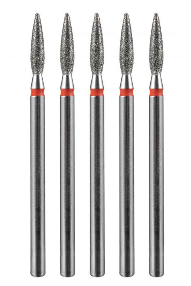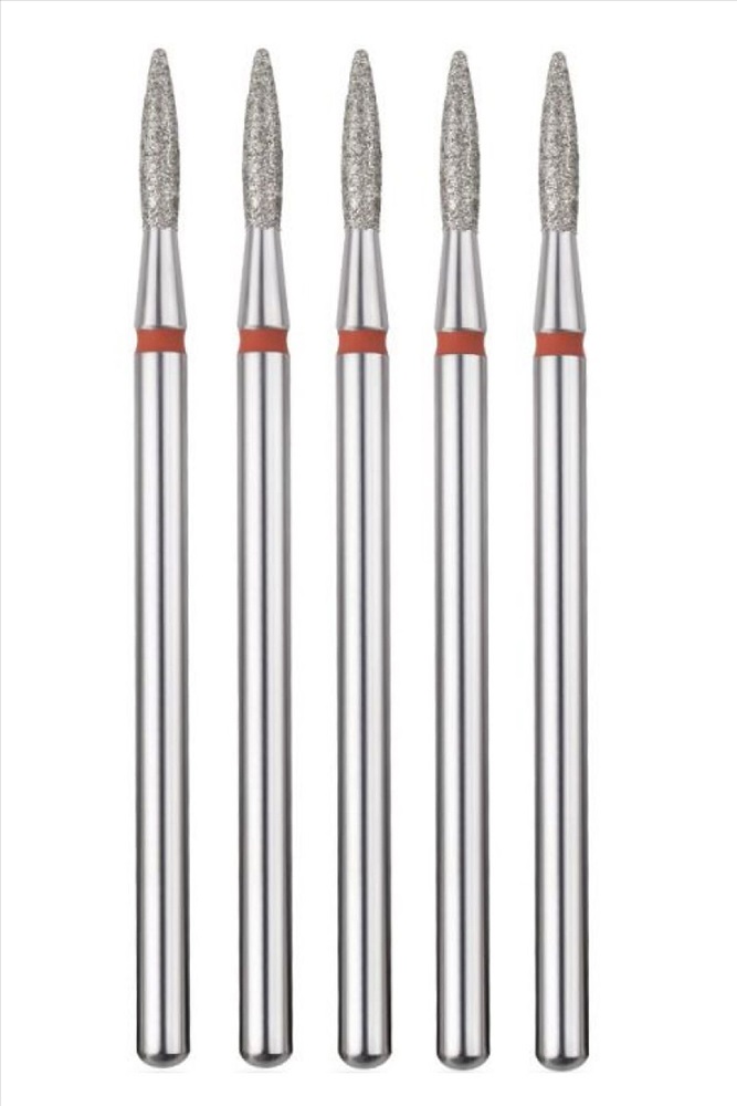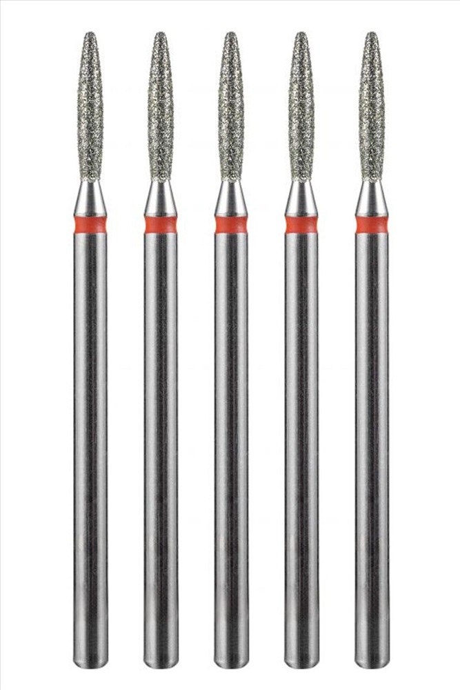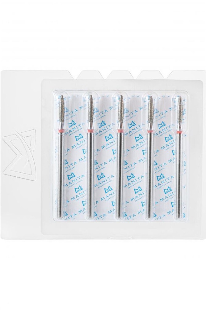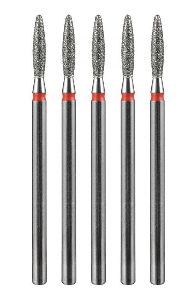 Manita Professional Фреза алмазная пламя острое удлиненное для аппаратного маникюра 856.104.243.100.023 ФАП-2.3-10М, красная насечка, ø 2,3 мм, 5 шт. KRISTALLER, 1231207 4 фото
