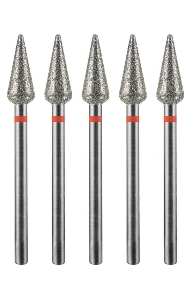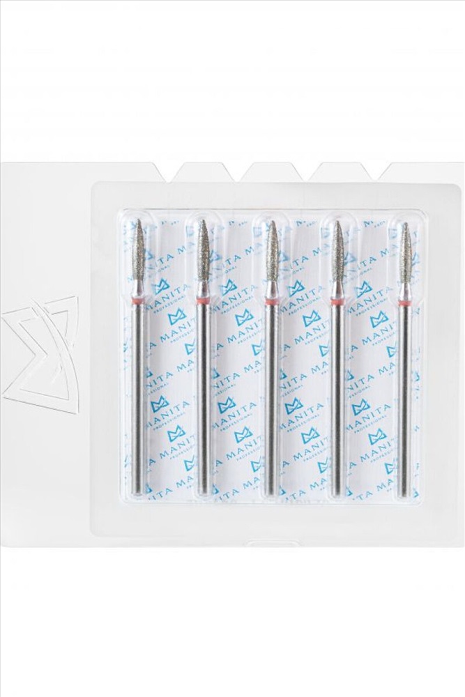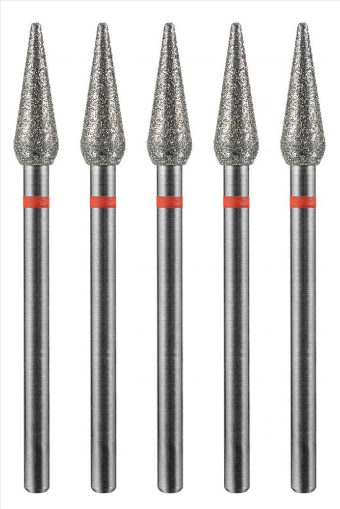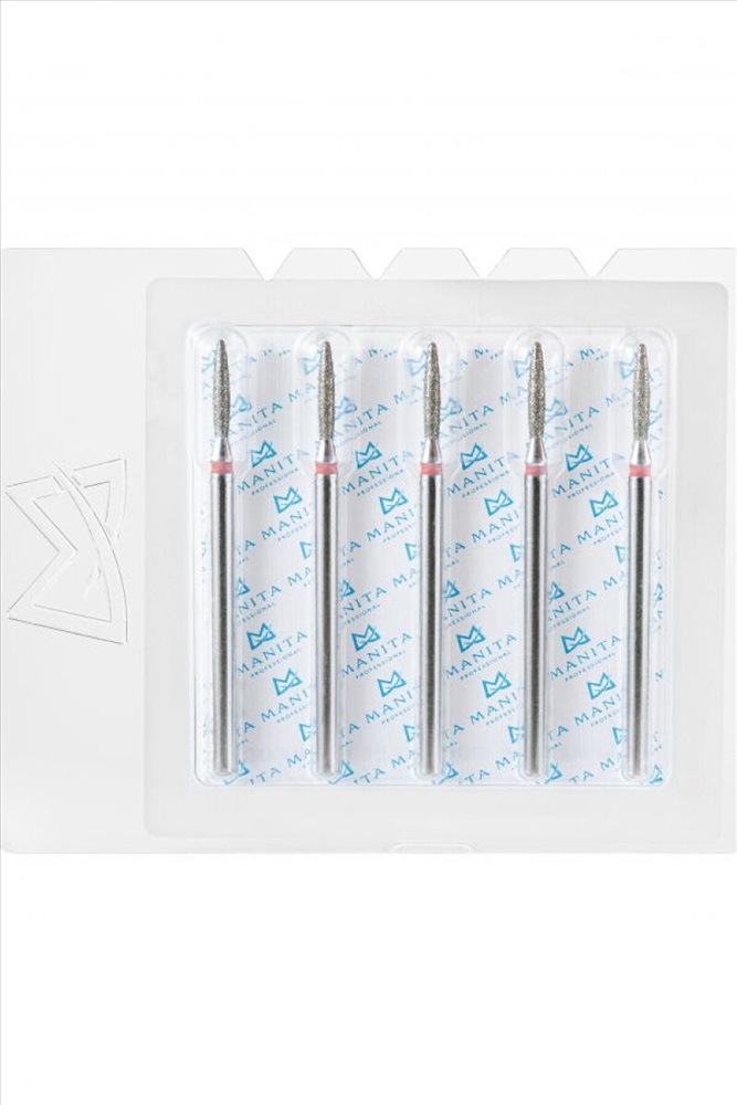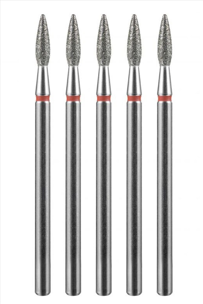 Manita Professional Фреза алмазная пламя острое удлиненное для аппаратного маникюра 856.104.243.100.023 ФАП-2.3-10М, красная насечка, ø 2,3 мм, 5 шт. KRISTALLER, 1231207 4 фото