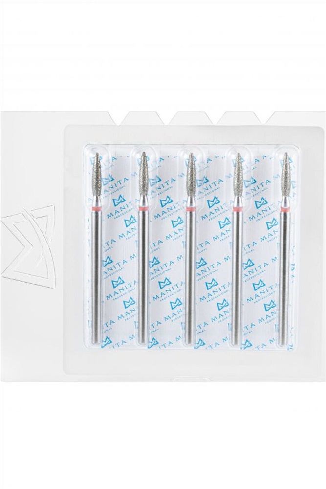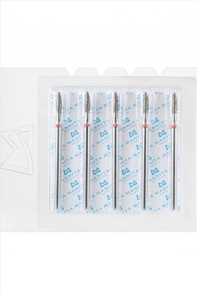 Manita Professional Фреза алмазная пламя острое для аппаратного маникюра 856.104.243.080.023 ФАП-2.3-8М, красная насечка, ø 2,3 мм, 5 шт. KRISTALLER, 1231185 4 фото