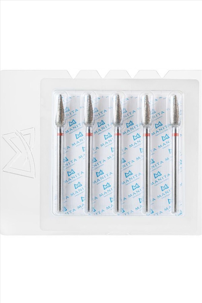 Manita Professional Фреза алмазная капля большая для аппаратного маникюра 856.104.260.125.050 ФАК-5,0 12,5М, красная насечка, ø 5,0 мм, 5 шт. KRISTALLER, 1231189 4 фото