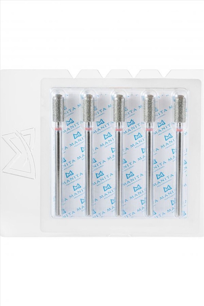 Manita Professional Фреза алмазная цилиндр закругленный для аппаратного маникюра 856.104.141.080.035 ФАЦС-3.5-8М, красная насечка, ø 3,5 мм, 5 шт. KRISTALLER, 1231203 2 фото