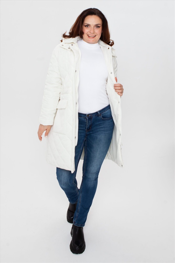 Всё бы ничего, но куртка не белая, как я хотела, и как было написано на этикетке. Куртка молочного цвета, даже чуть желтее. Но никак не белая. Обидно. Нужна была именно белая..