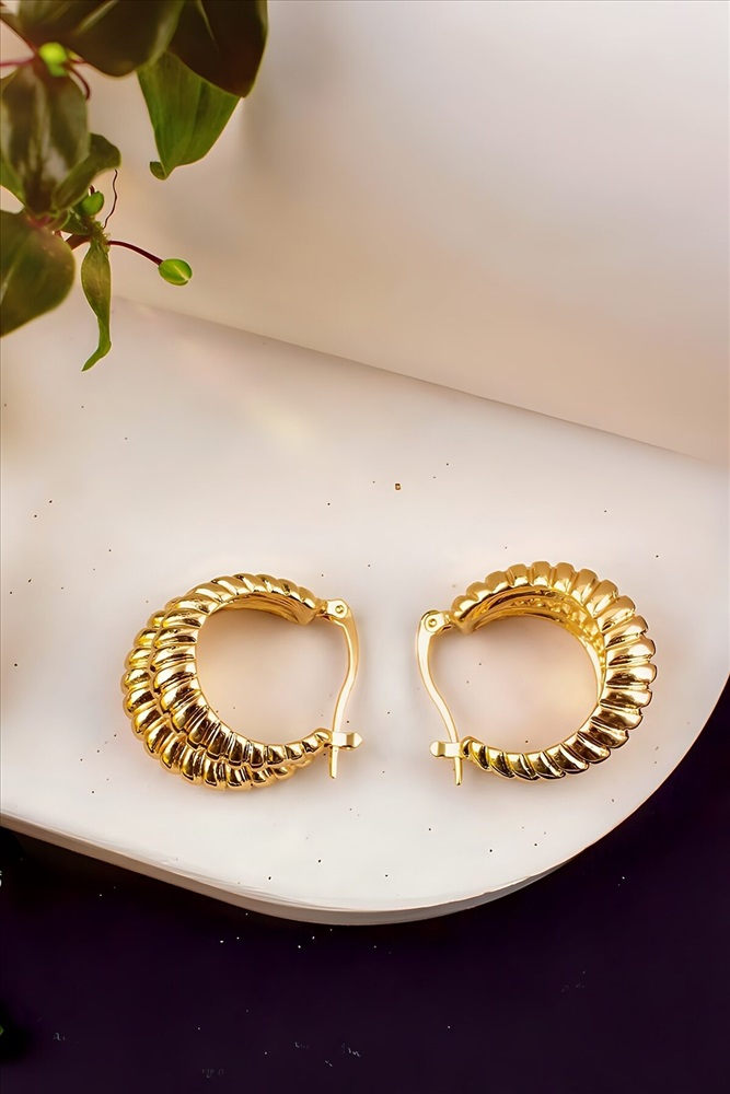 Серьги двойные кольца Рифленые + Подарок НАТАЛИ, 1133043 5 фото