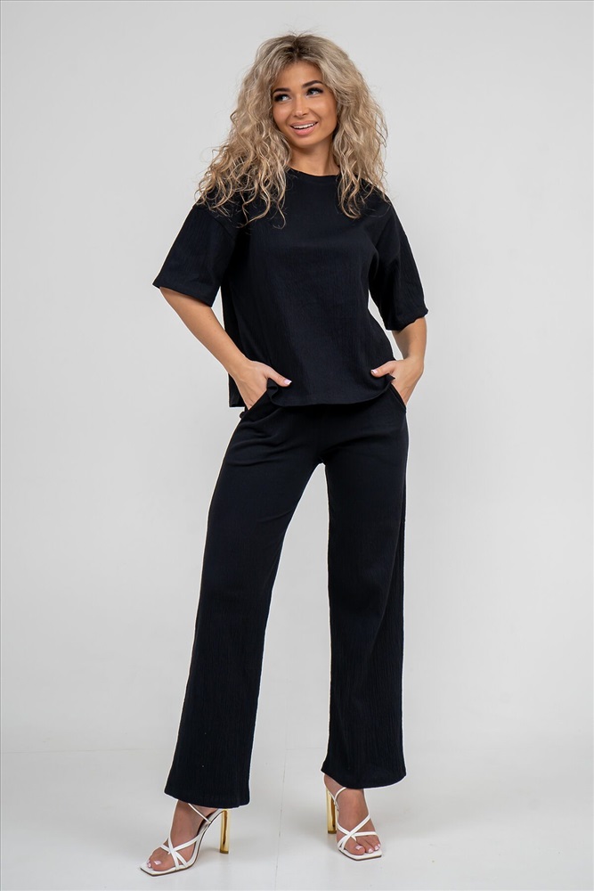 Взяла по распродаже. Соответствует образцам и размерам. Очень приятная ткань, тянется, при стирке не линяла. Изделия форму сохранили... Жду прохладной погоды с нетерпением - выйти в свет