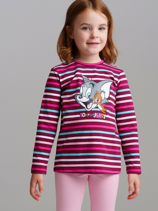 Фуфайка детская трикотажная для девочек (футболка с длинными рукавами)