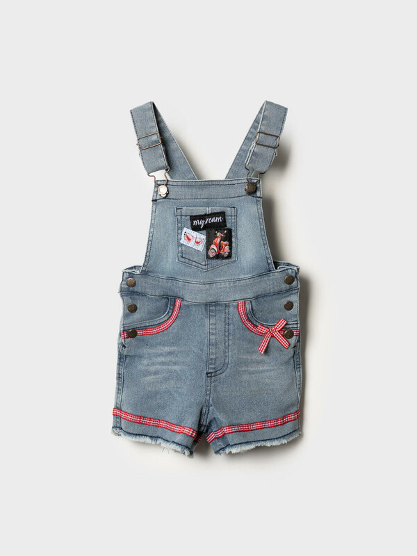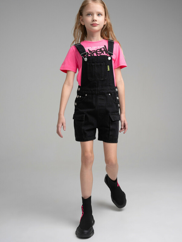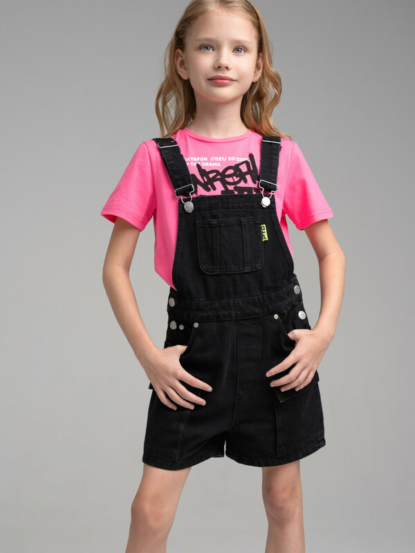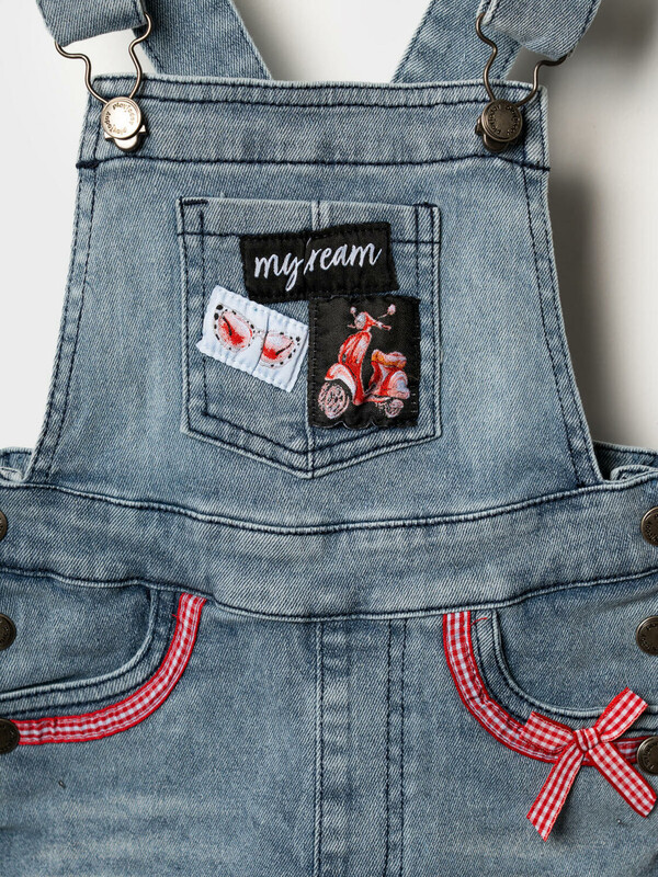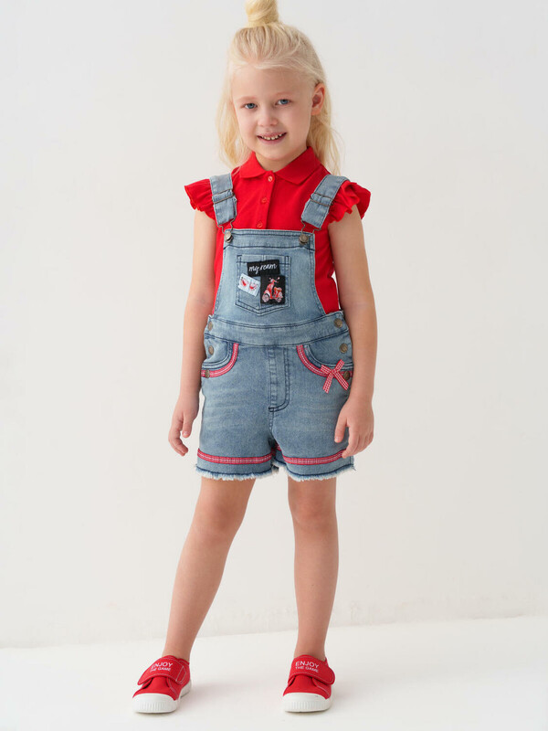 Полукомбинезон текстильный джинсовый для девочек 10 фото