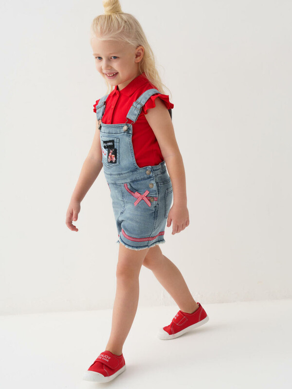 Полукомбинезон текстильный джинсовый для девочек 9 фото