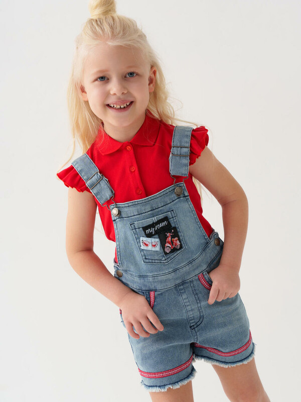 Полукомбинезон детский текстильный джинсовый для девочек 6 фото