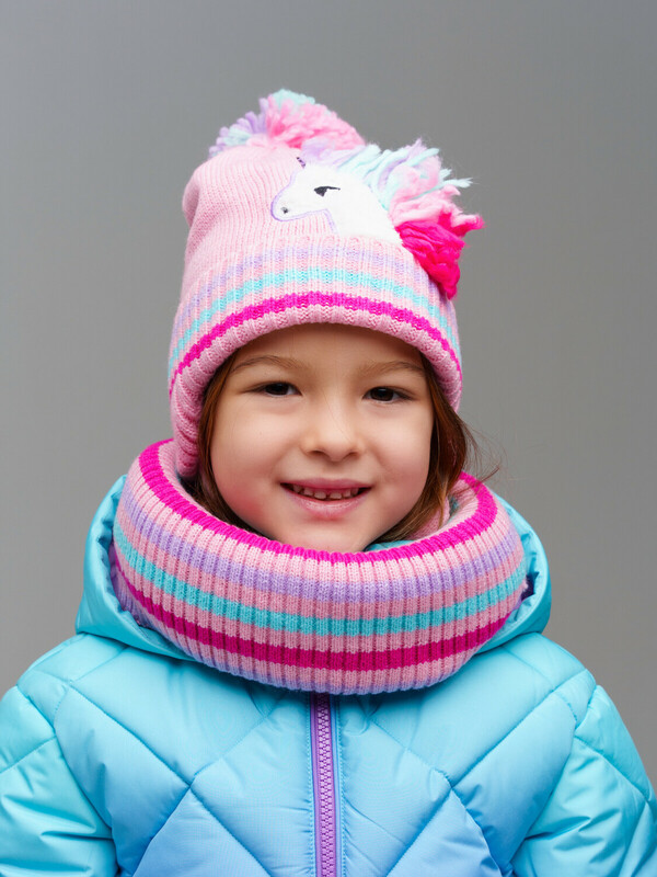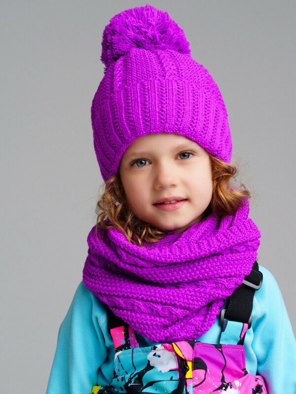Комплект трикотажный для девочек: шапка, снуд 10 фото