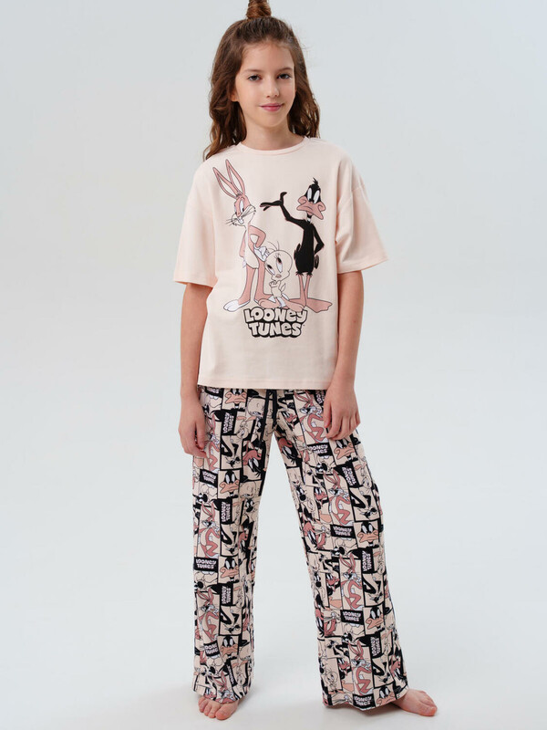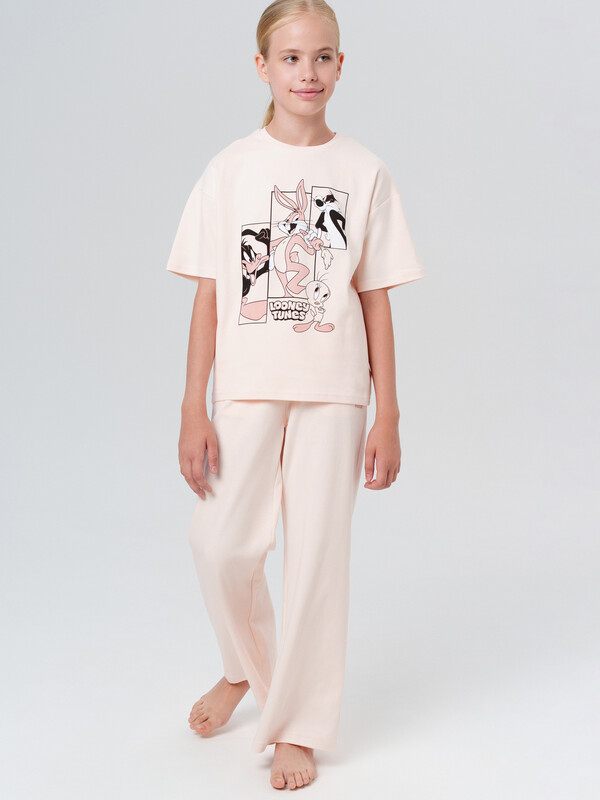 Комплект трикотажный для девочек: фуфайка (футболка), брюки 10 фото