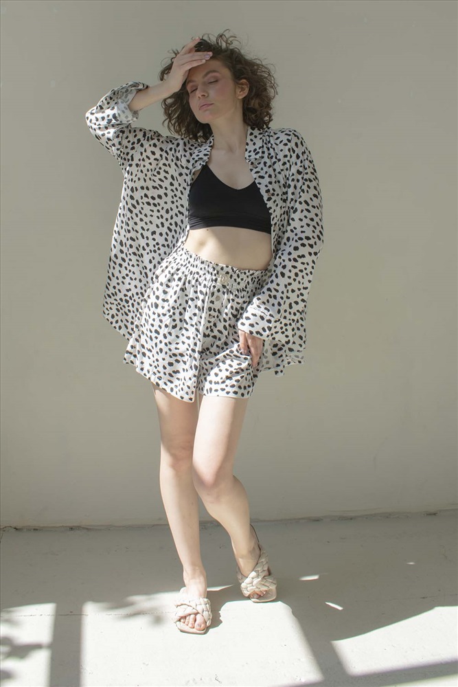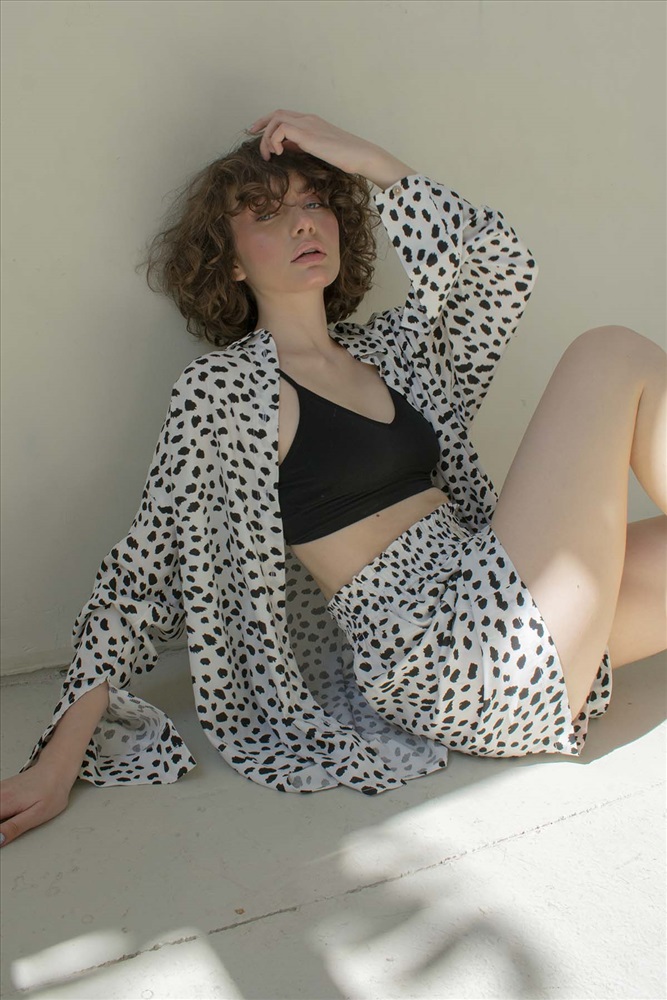 Рубашка женская  HUG077/10/Бежевый, черный 7 фото