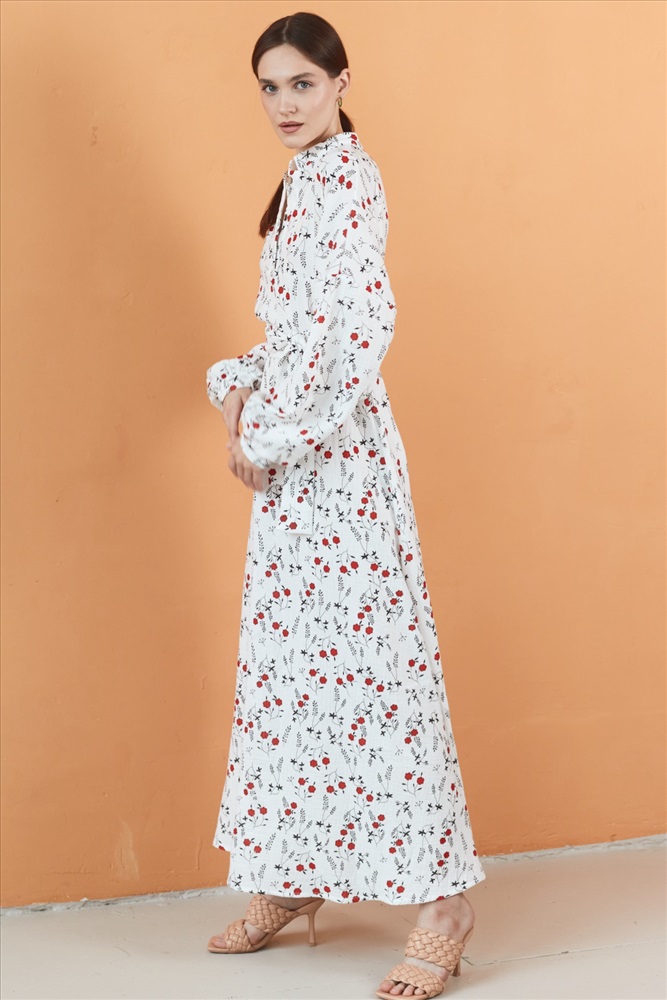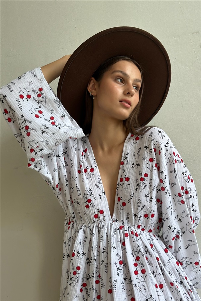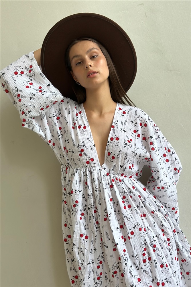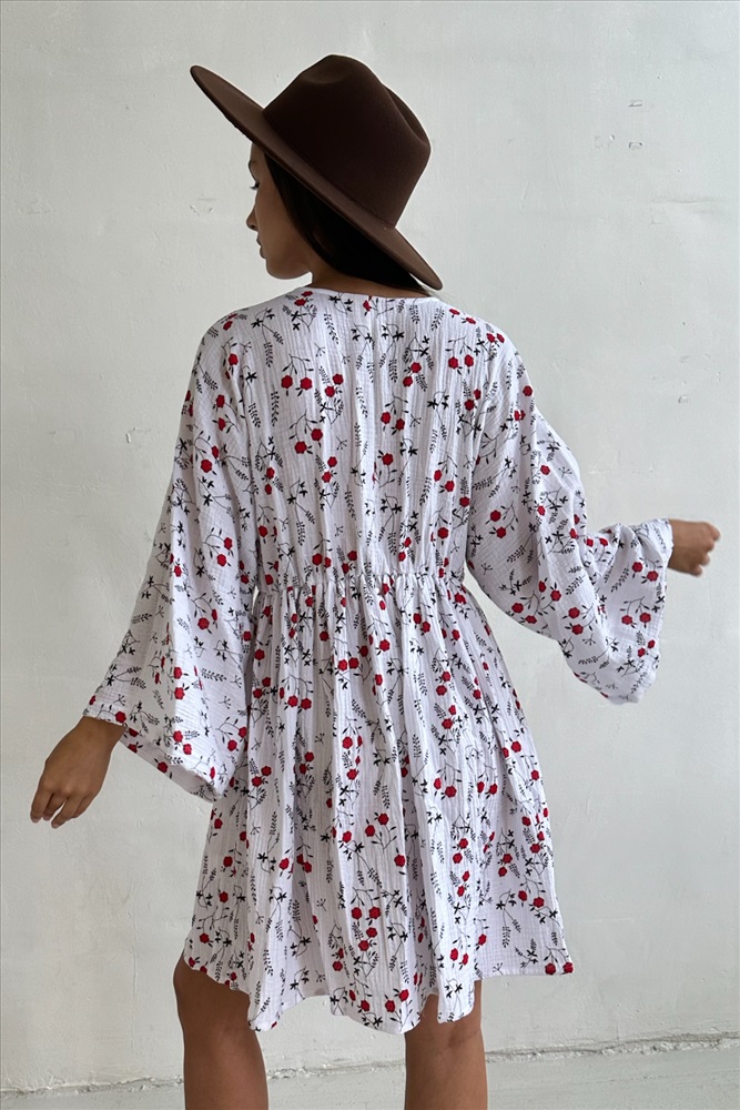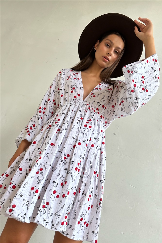 Платье муслин  FLOWER030/06/Белый, красный 6 фото