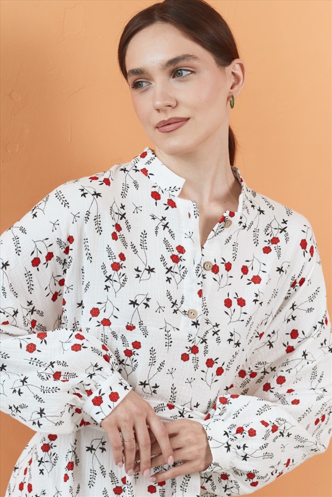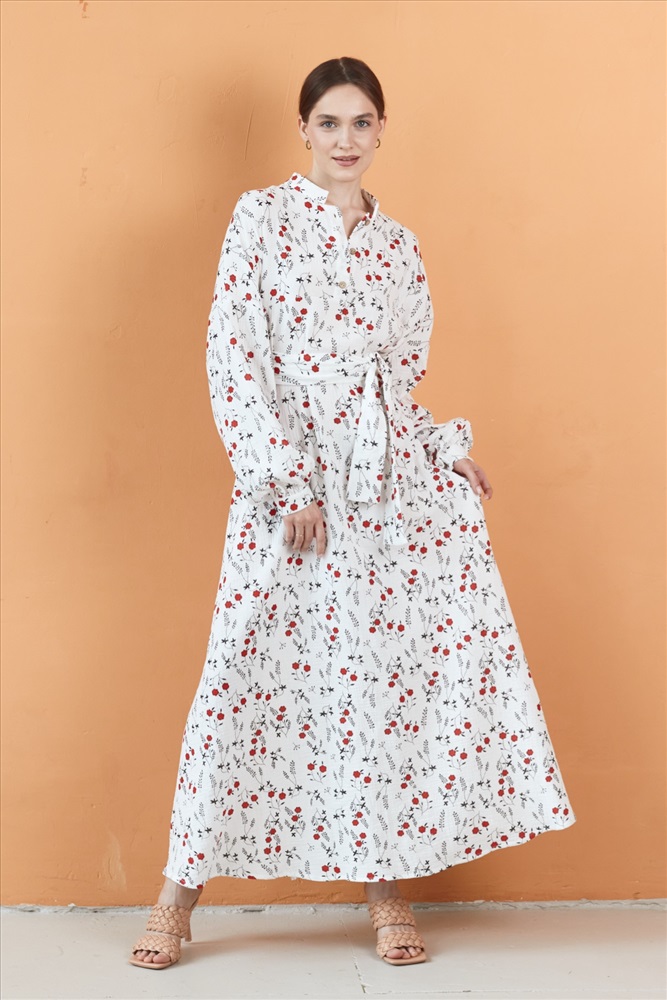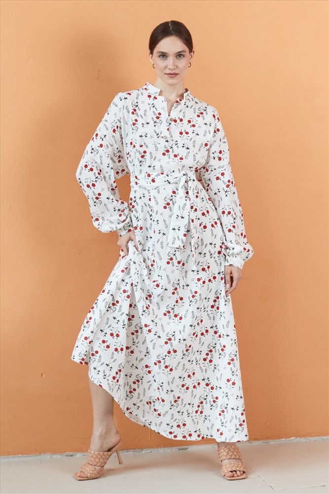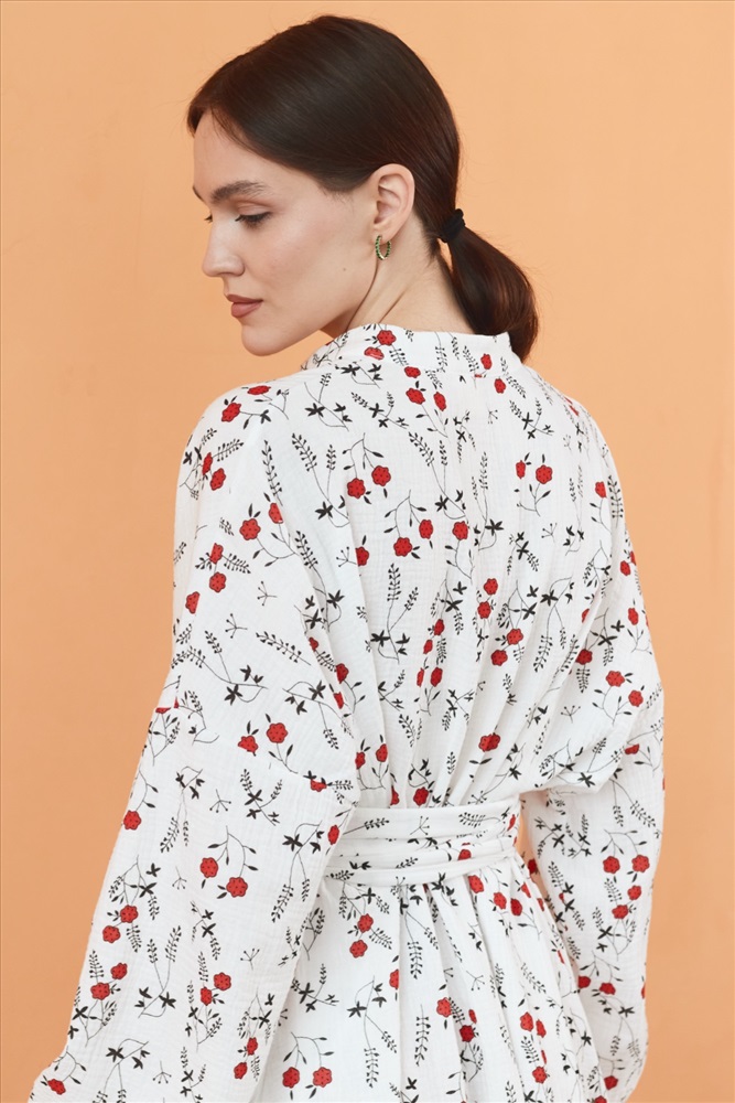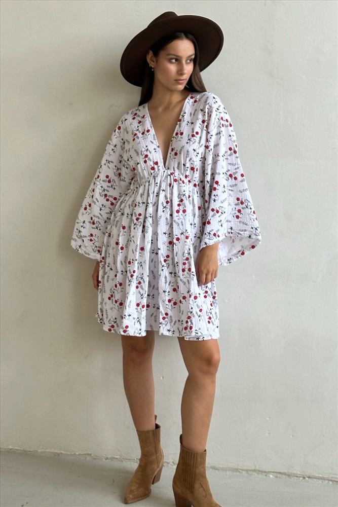 Платье муслин  FLOWER030/06/Белый, красный 6 фото