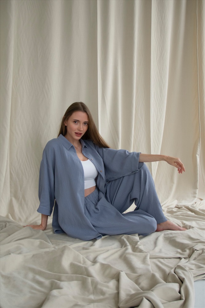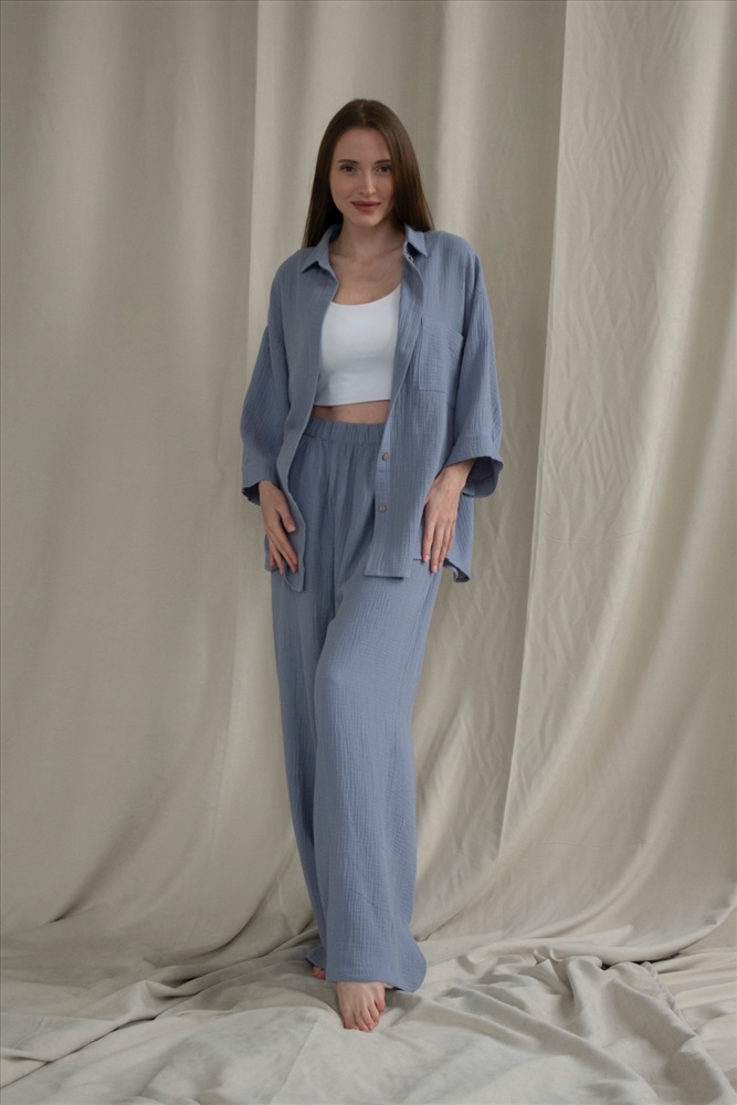 Костюм муслин  SET010/01/Пыльно-голубой 6 фото