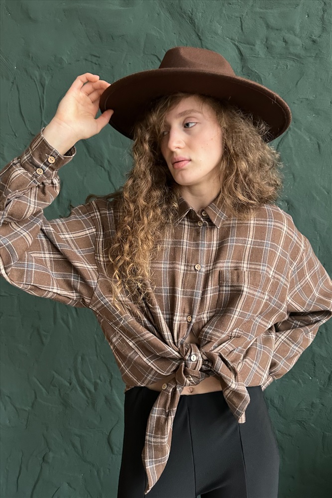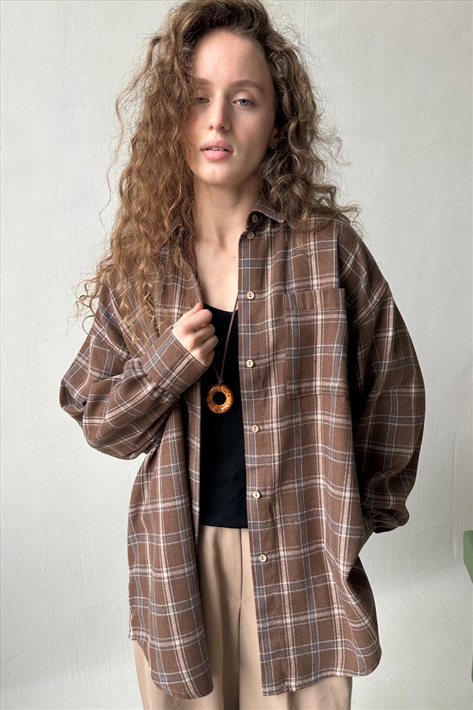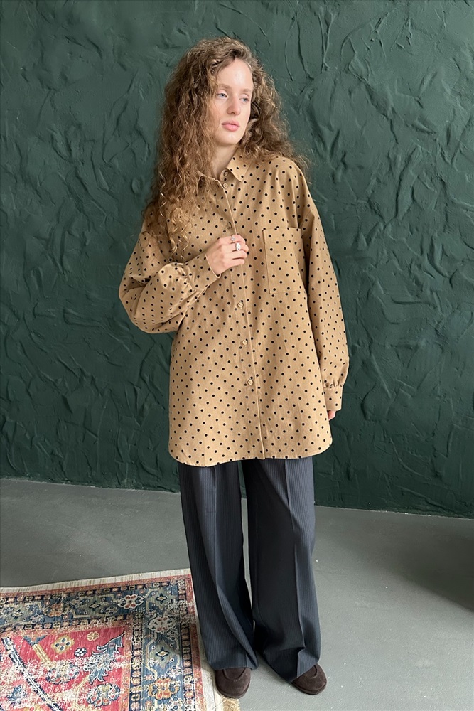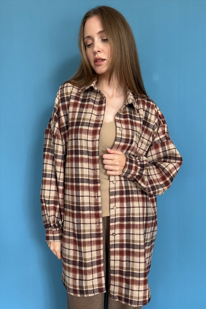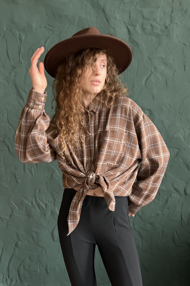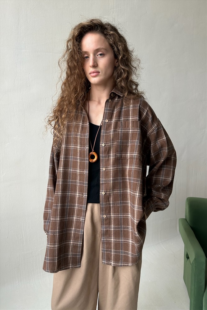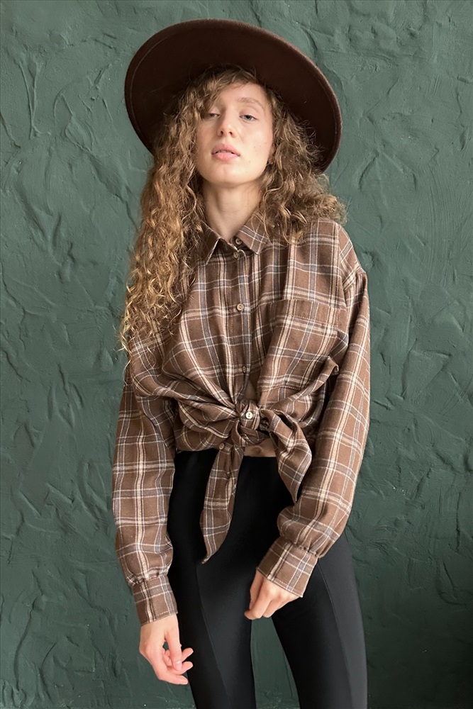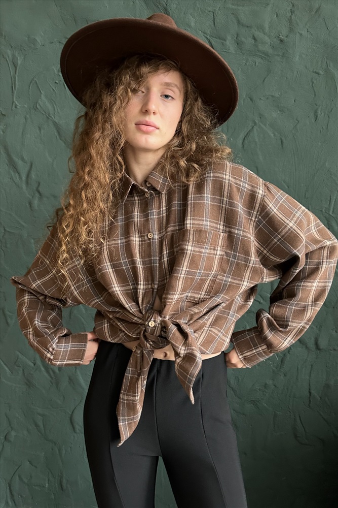 Рубашка женская  HUG077/13/Коричневый, бежевый 10 фото