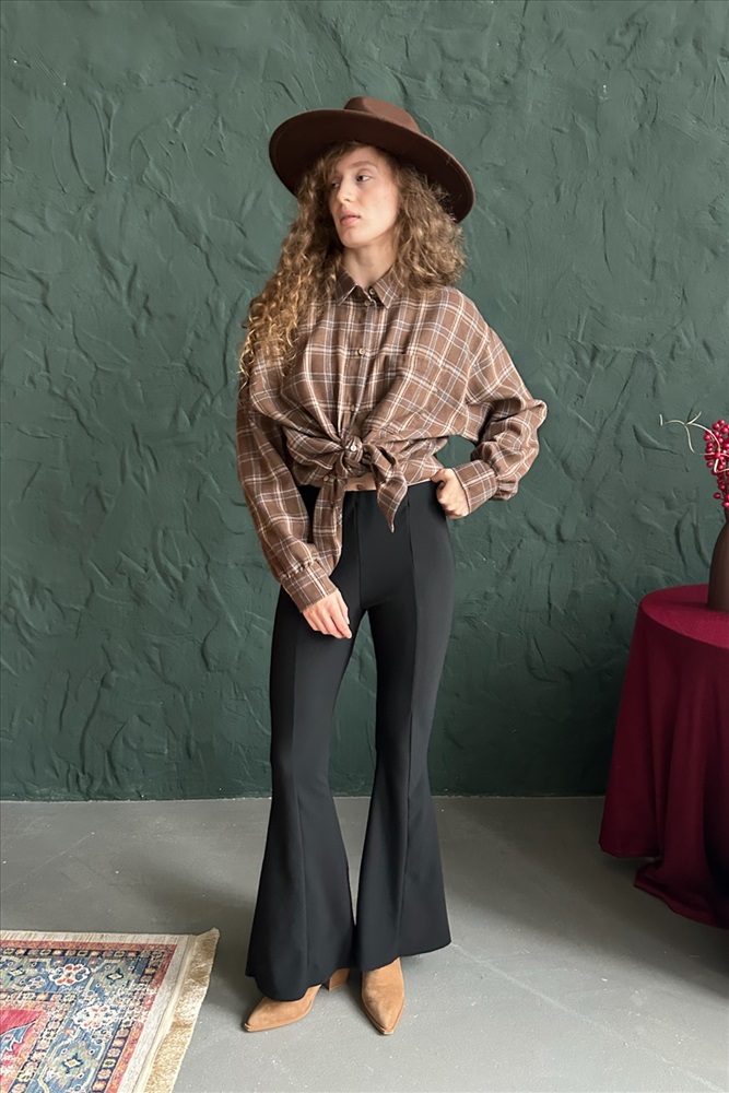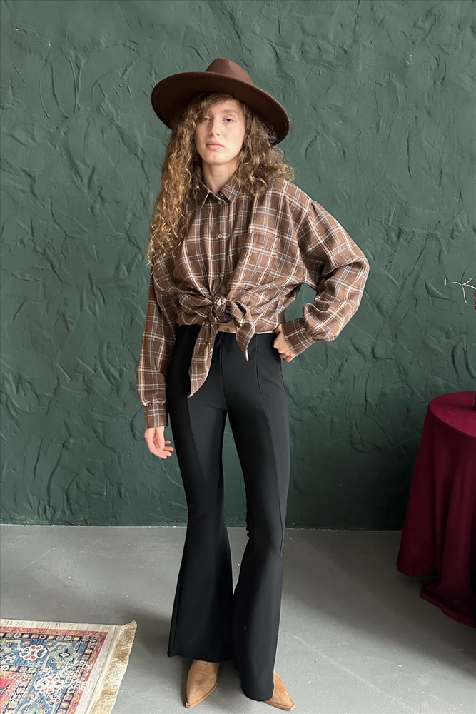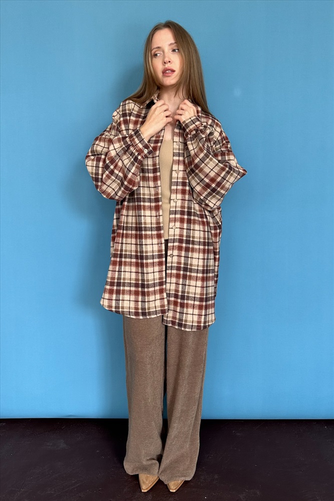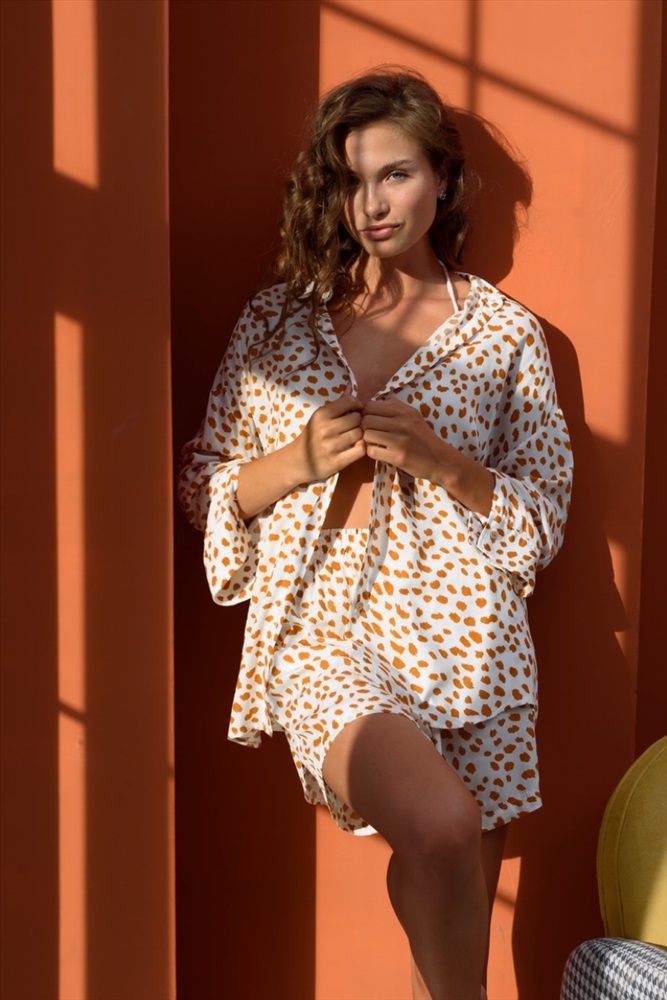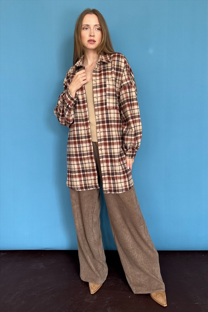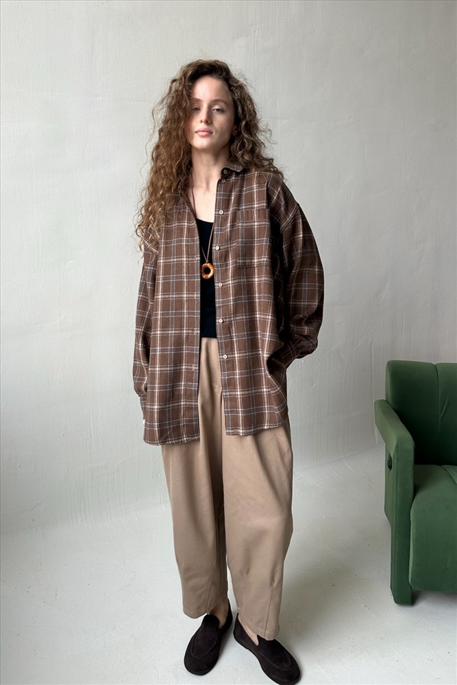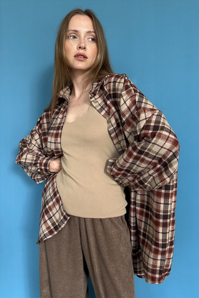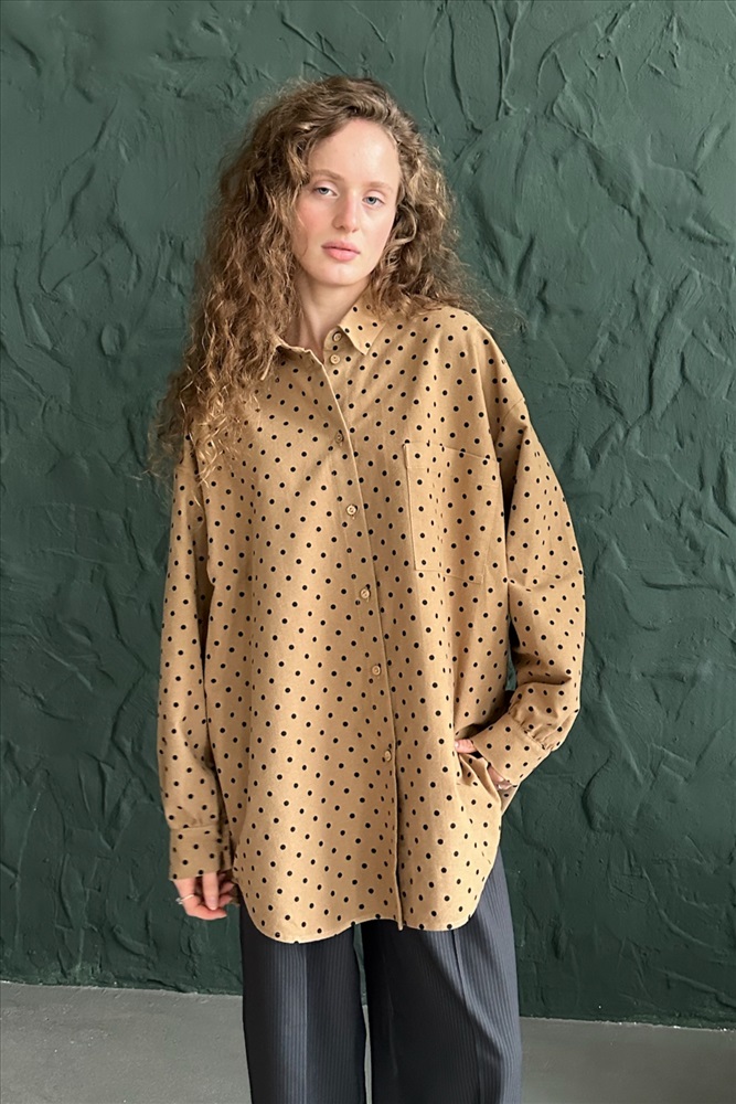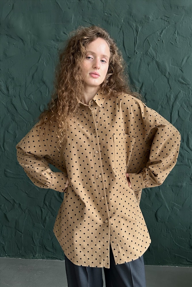 Рубашка женская  HUG077/13/Коричневый, бежевый 10 фото