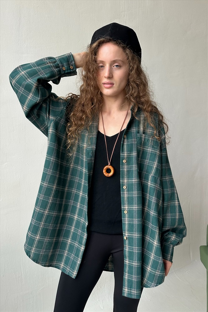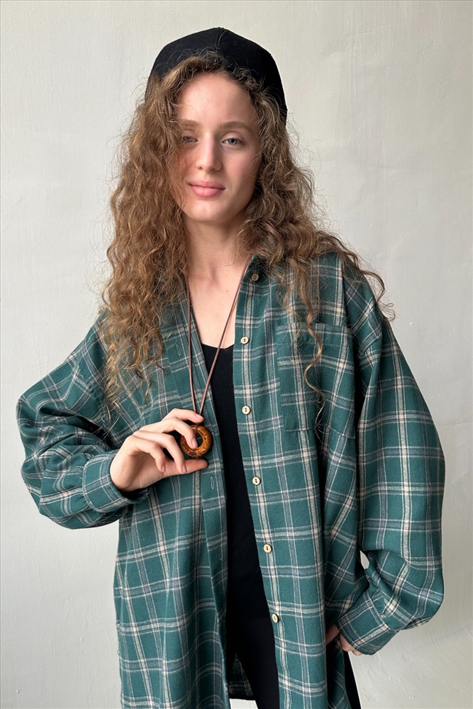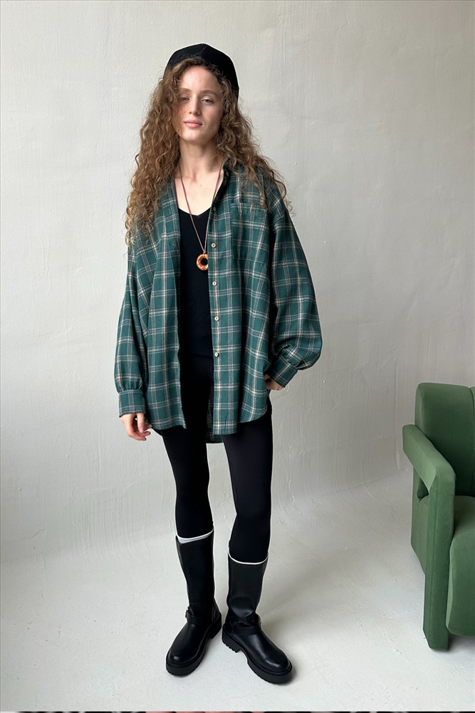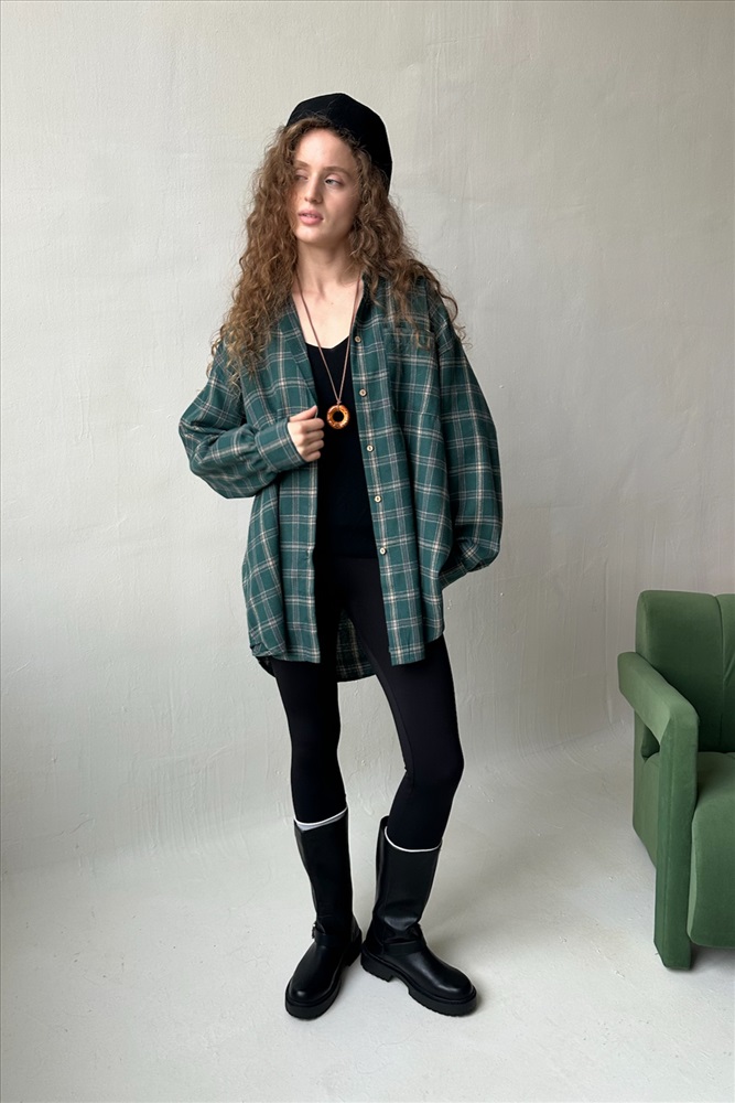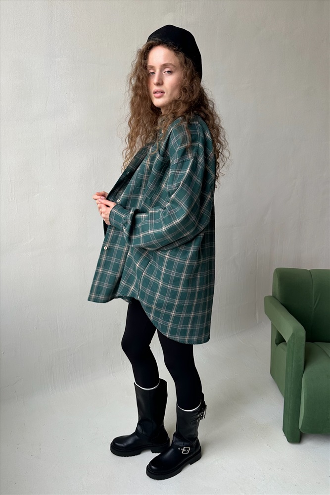 Рубашка женская  HUG077/14/Зеленый, бежевый 10 фото