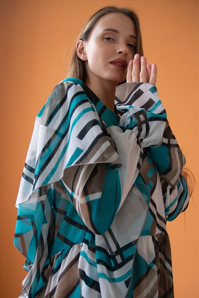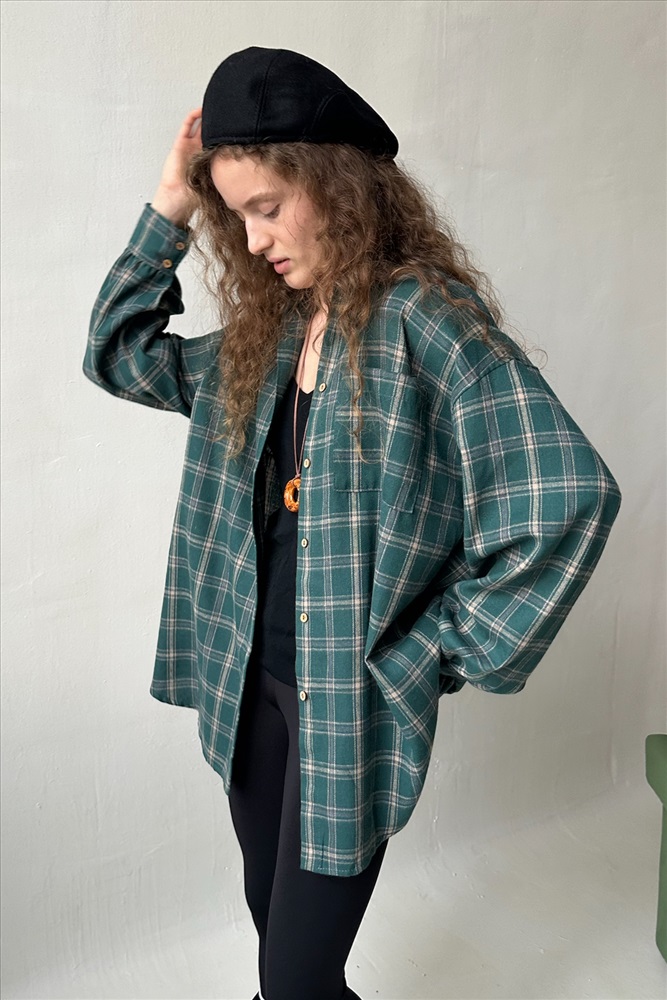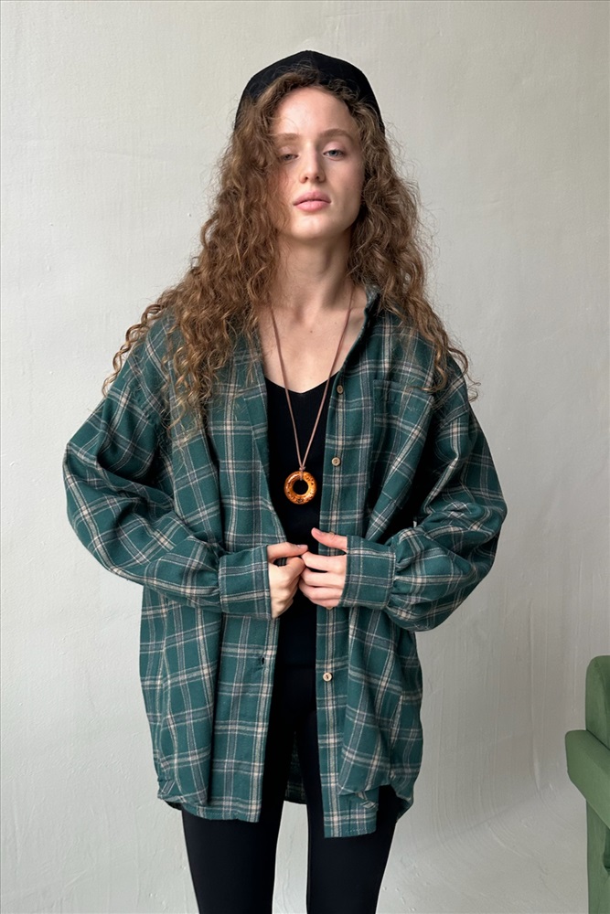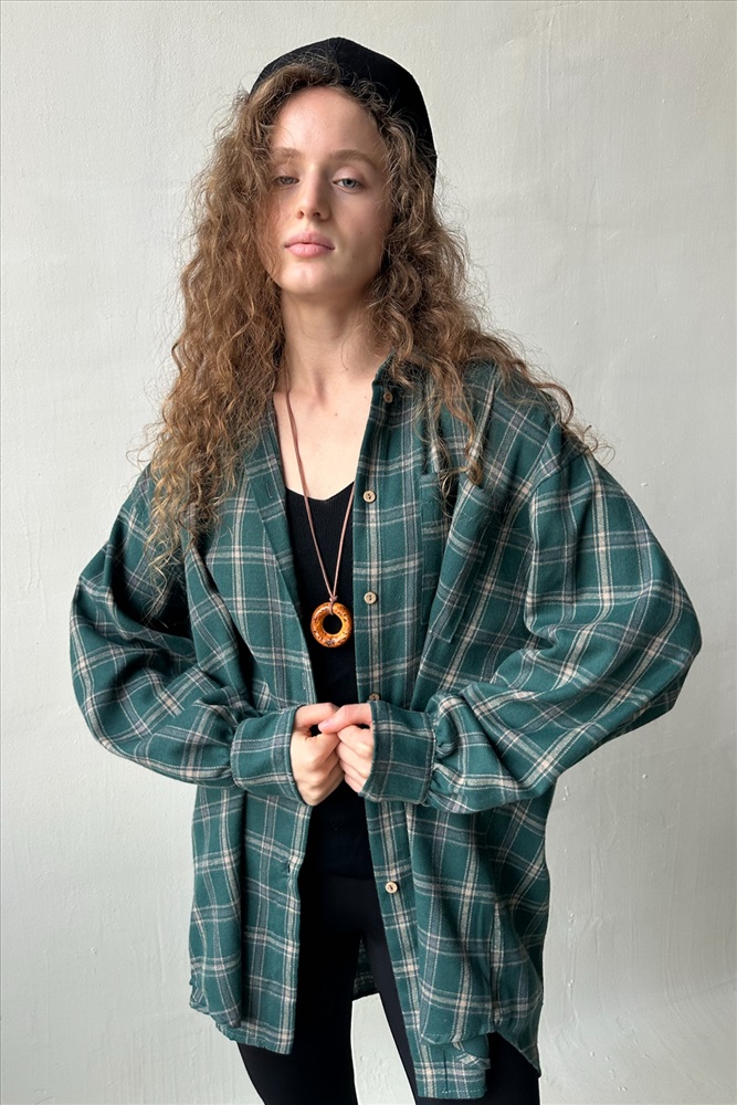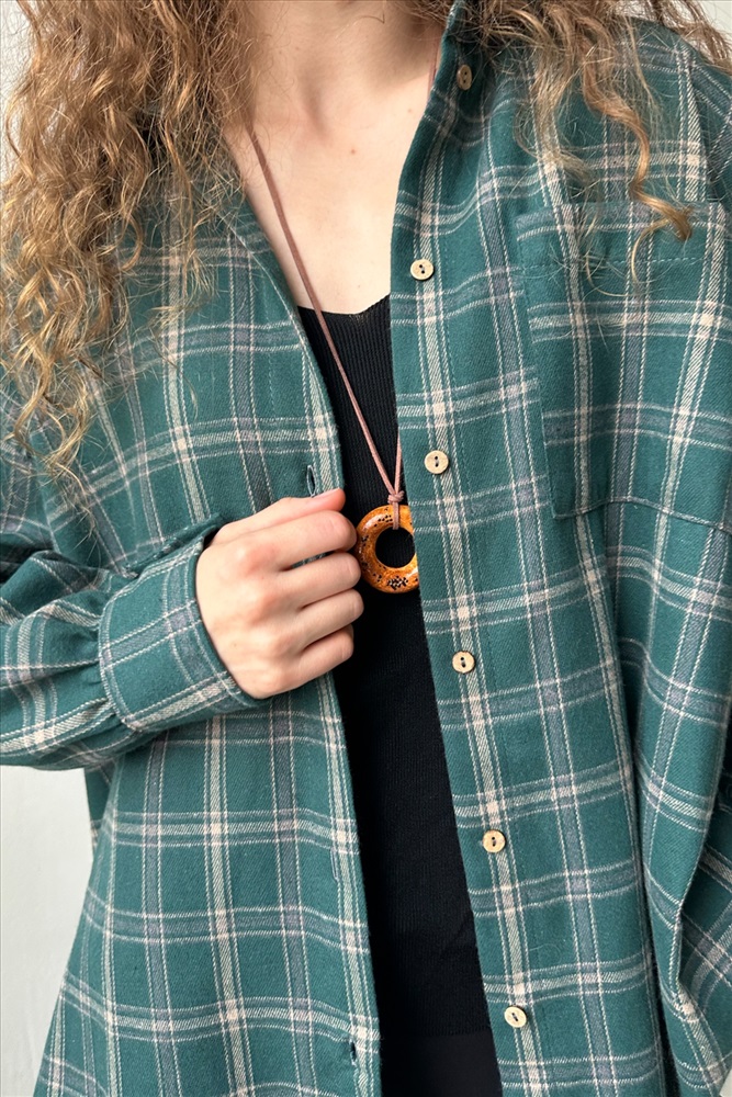 Рубашка женская  HUG077/14/Зеленый, бежевый 10 фото