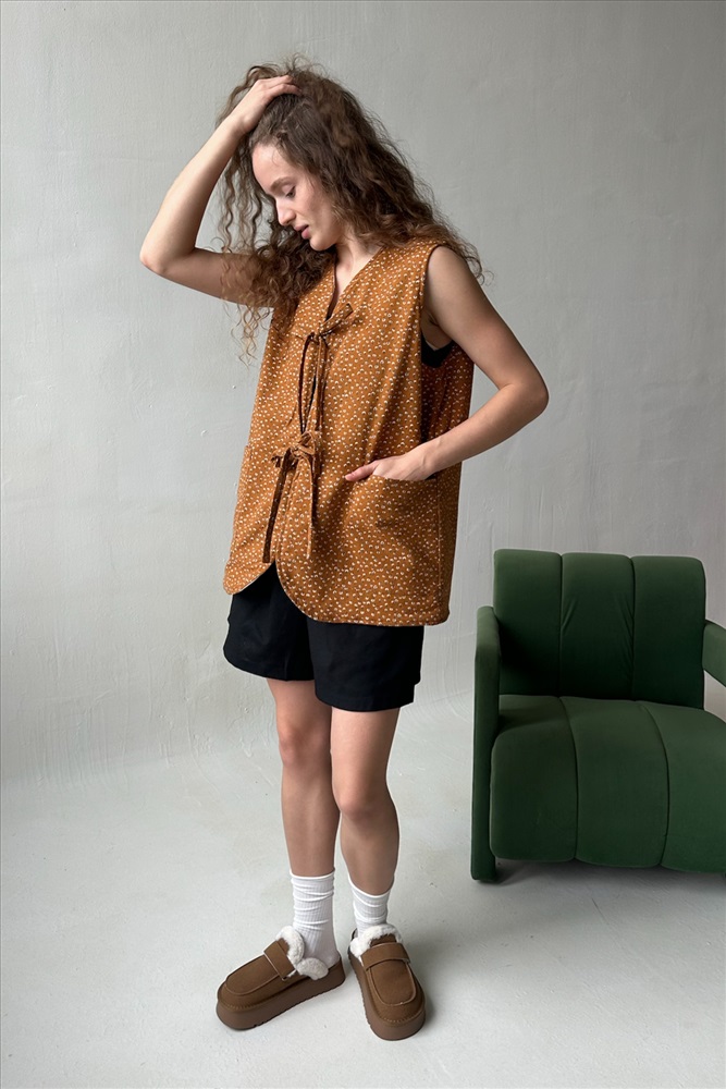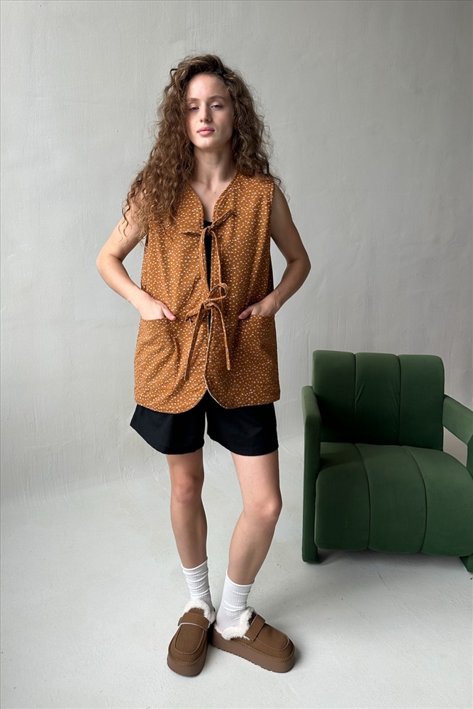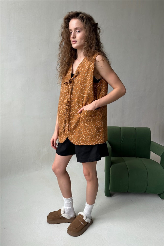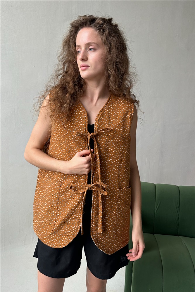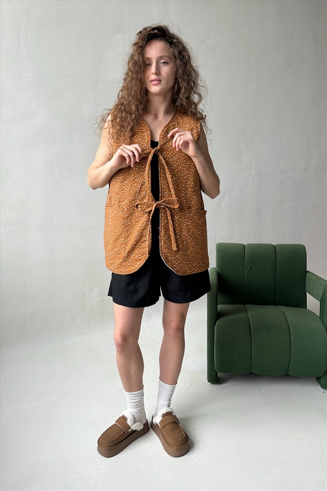 Жилет стеганый  HOME109/01/Коричневый, белый 10 фото
