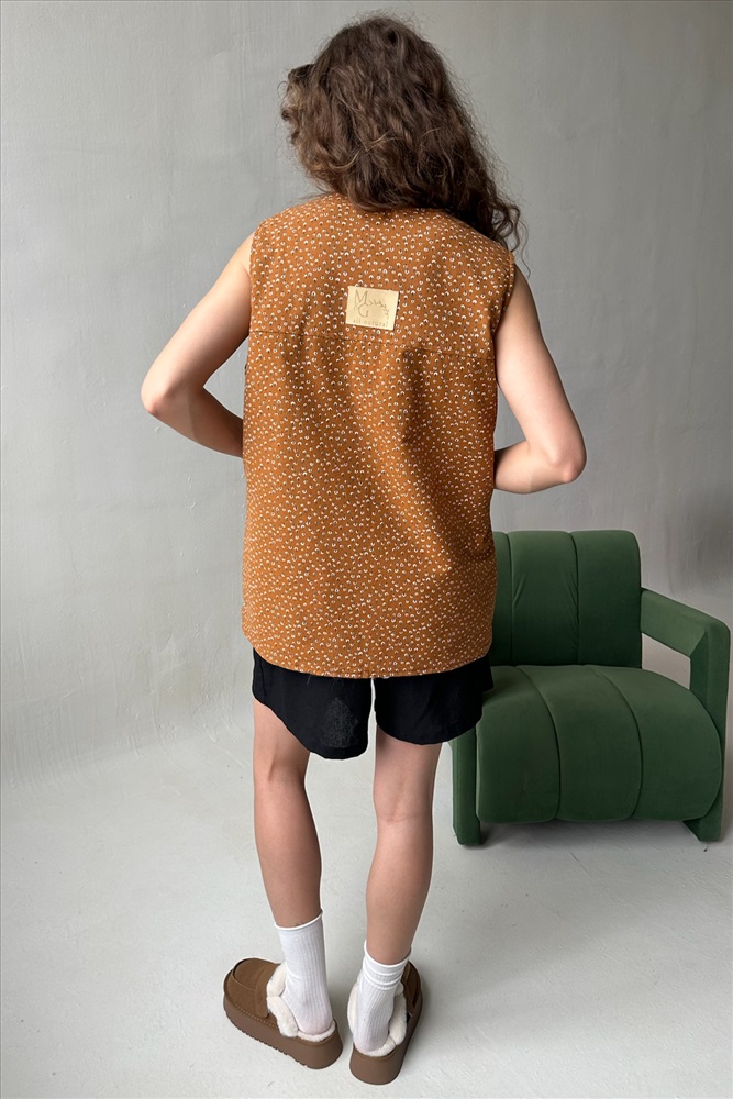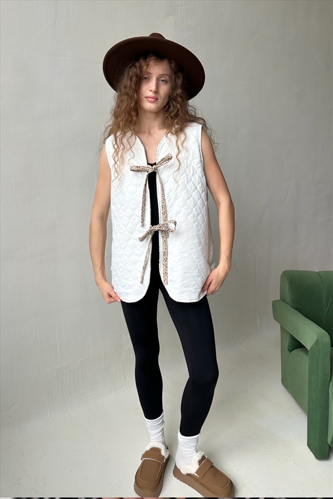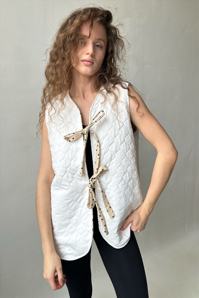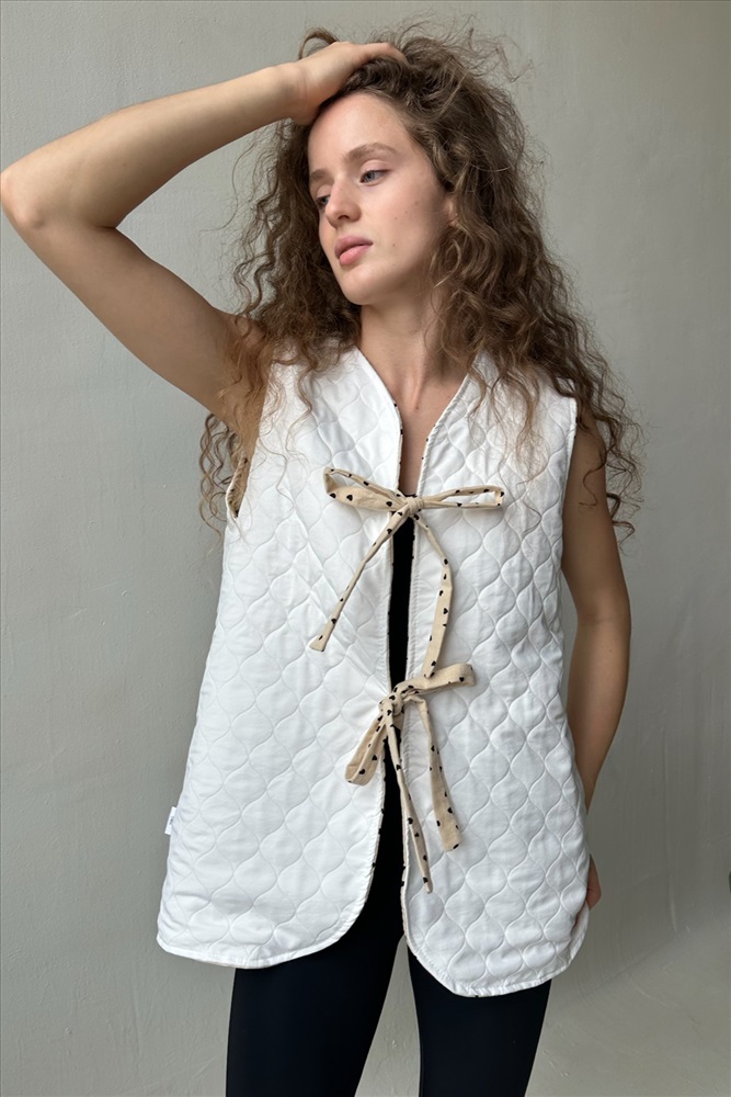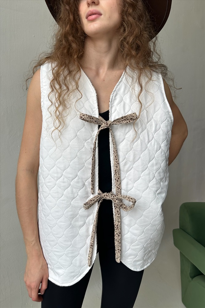 Жилет стеганый  HOME109/01/Коричневый, белый 10 фото