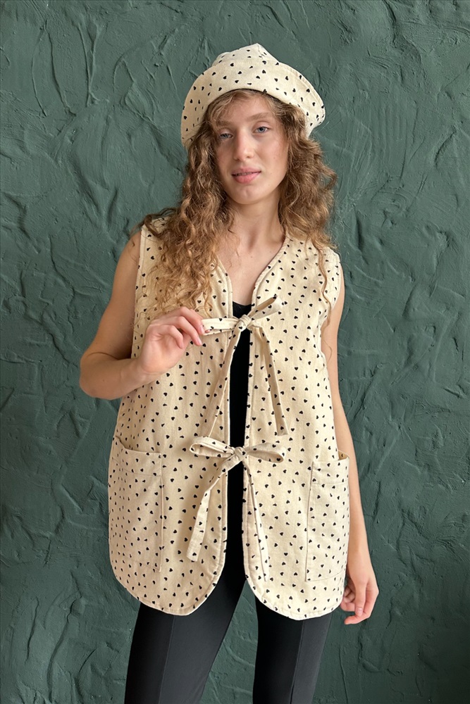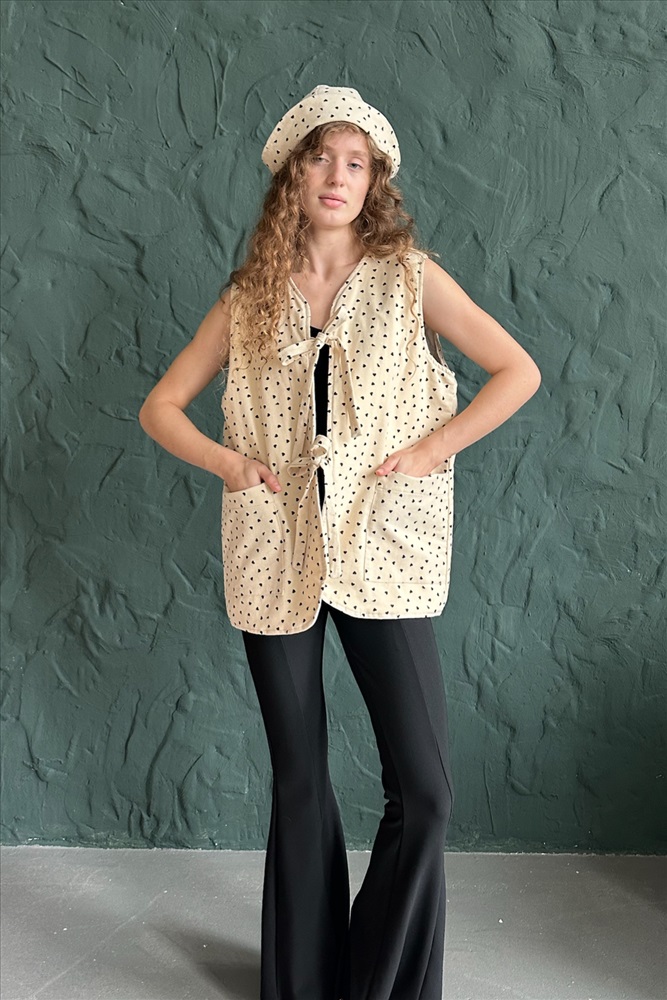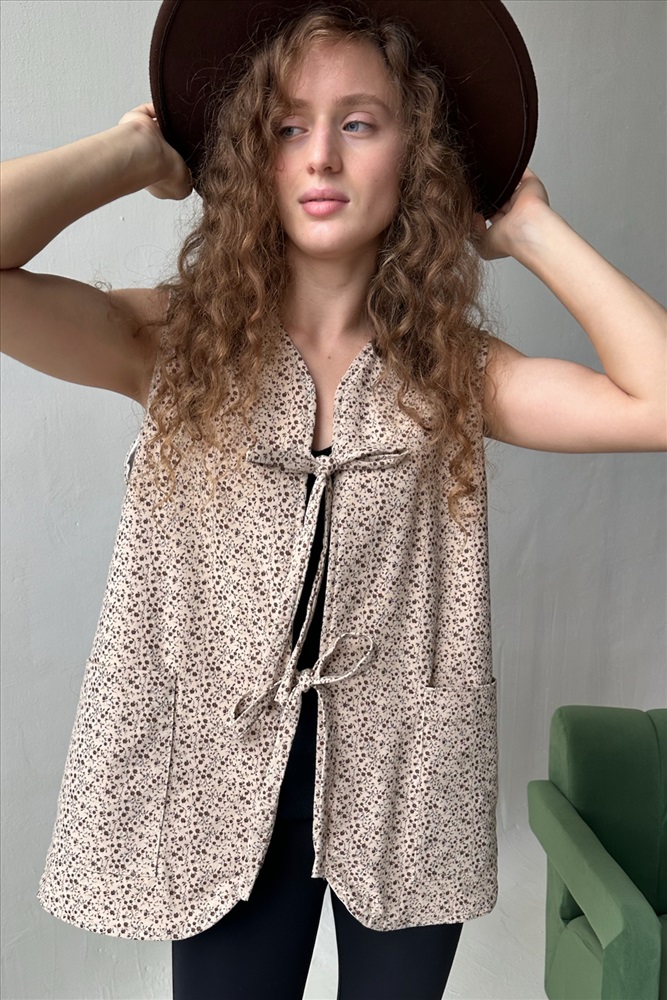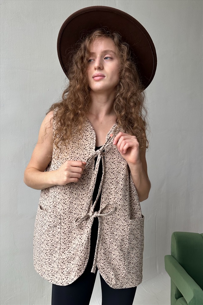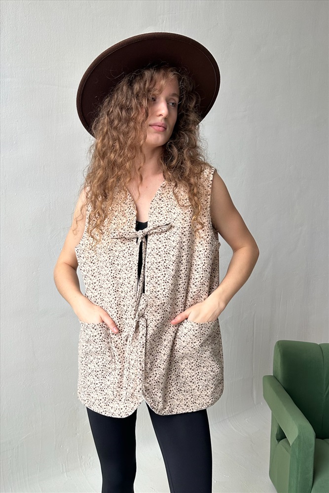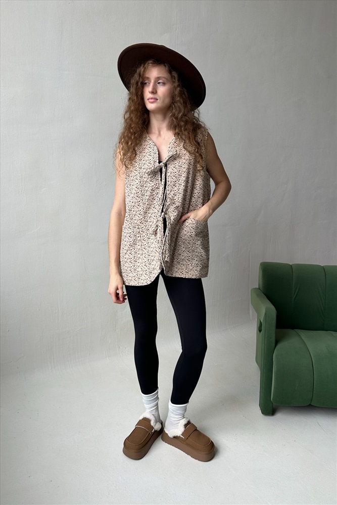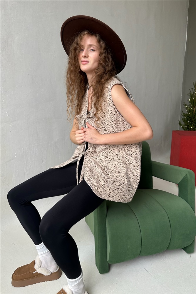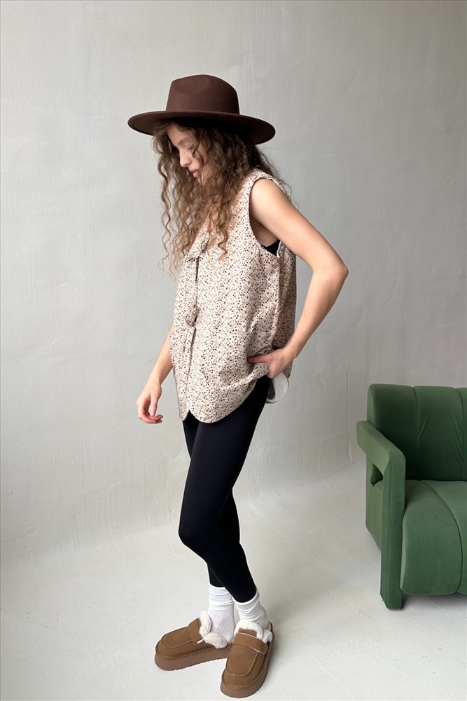 Жилет стеганый  HOME109/02/Бежевый, коричневый 10 фото