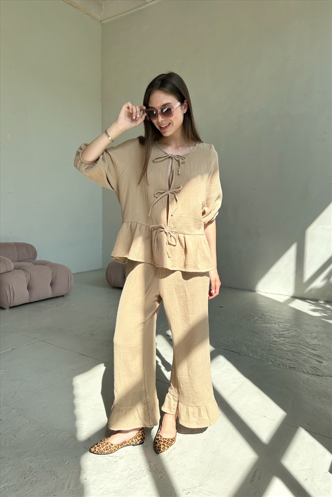 Костюм муслин  SET070/05/Белый, бежевый 5 фото